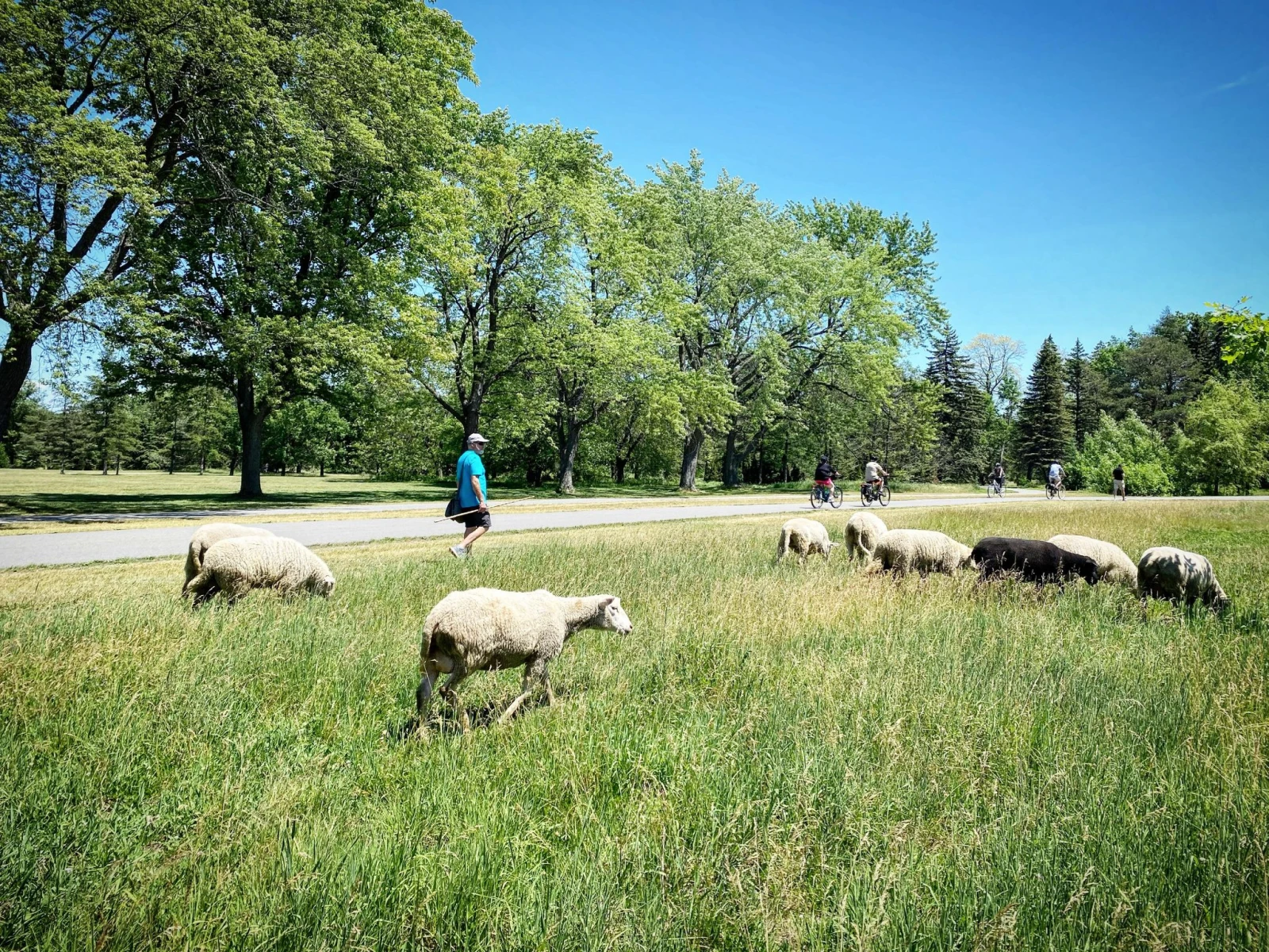 Mon père suivait les moutons au loin, en les éloignant de la piste cyclable où des gens se croient parfois au circuit Gilles-Villeneuve.