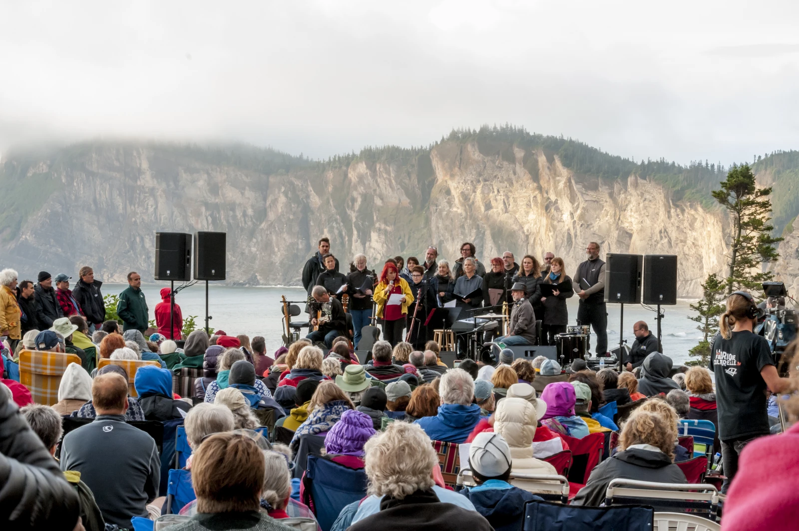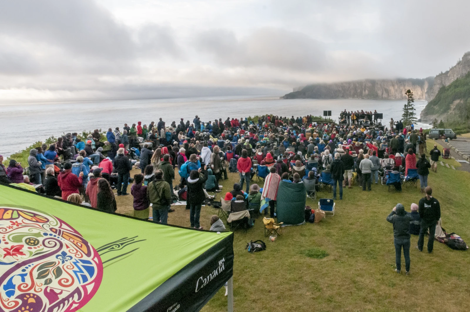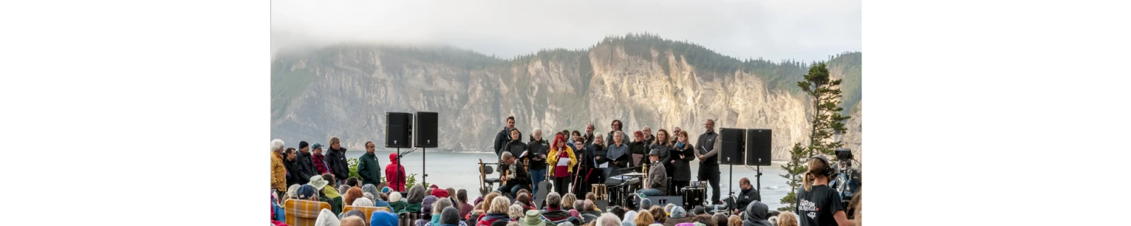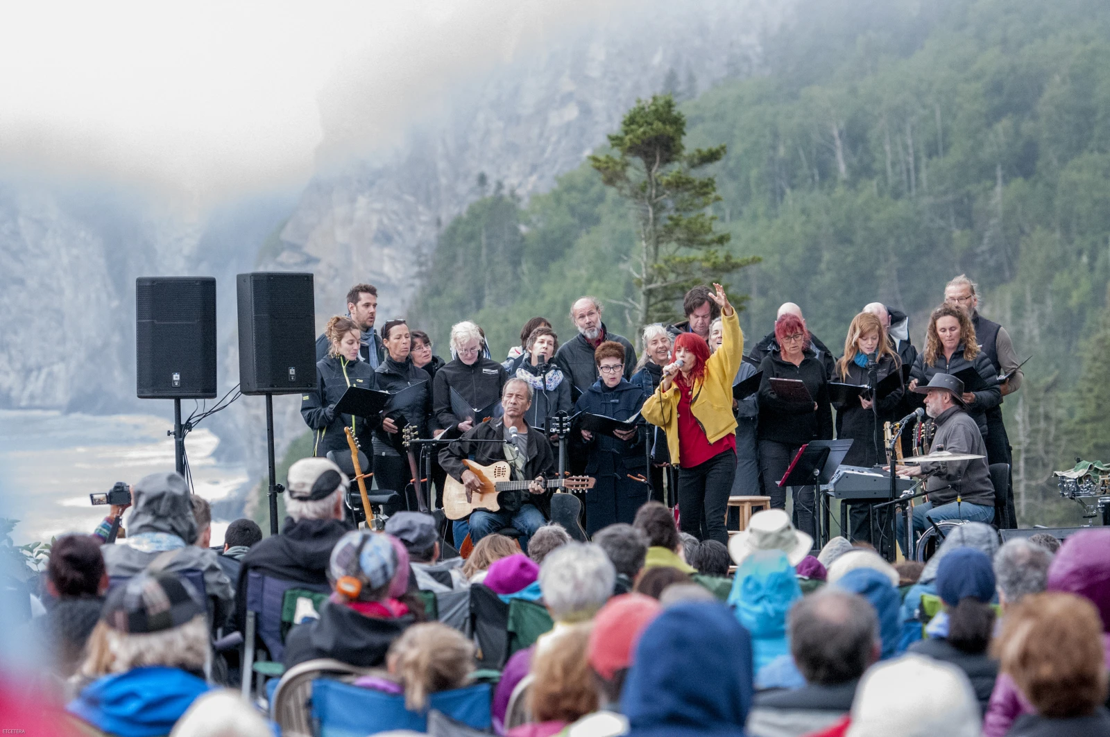 Chaque année y a un concert inimaginable pendant le lever du soleil. C’est unique et c’est juste là que c’est possible. Ça se passe au Cap-Bon-Ami dans le sublime Parc Forillon. Il est 4 h du matin, on marche avec La Sophie Faucher et les autres amis du convoi dans la montagne jusqu’à la scène qui accueillera l’artiste/fée Chloé Sainte-Marie.