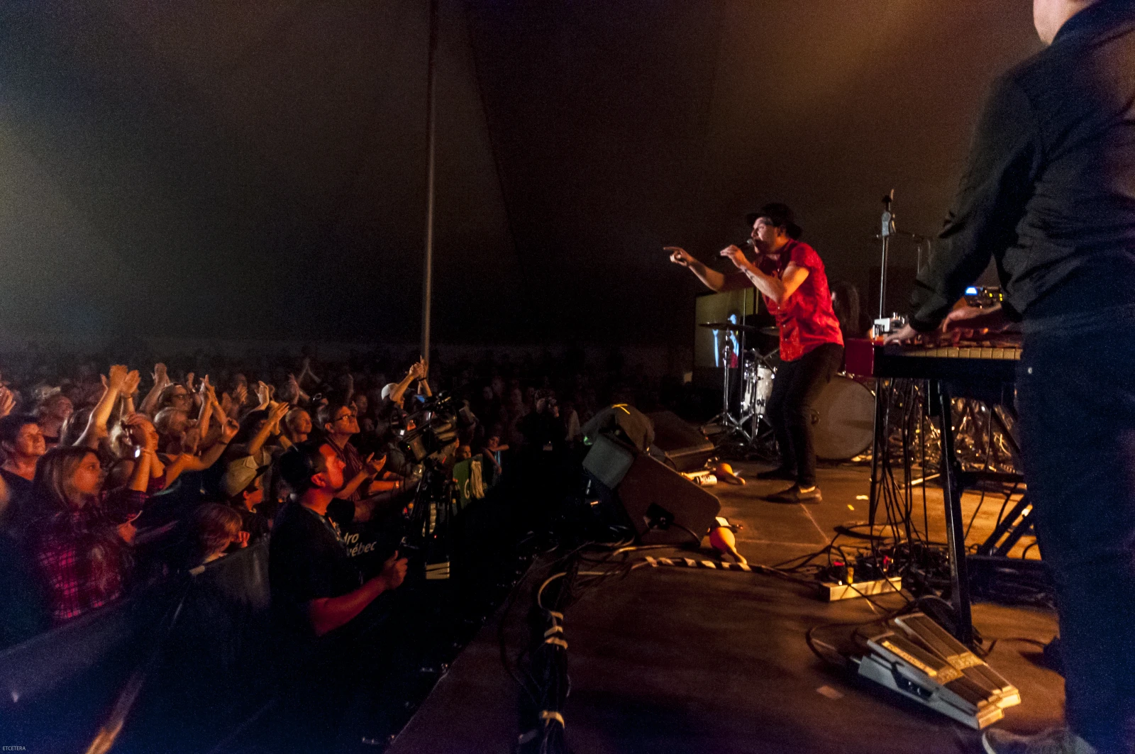Aller voir Yann en concert ça veut dire : en avoir plein les yeux. Ce gars-là est généreux comme mille. Une vraie bête de scène. Et comme le public de la Gaspésie est vraiment en feu, je me doutais qu’on allait avoir chaud dans le chapiteau.