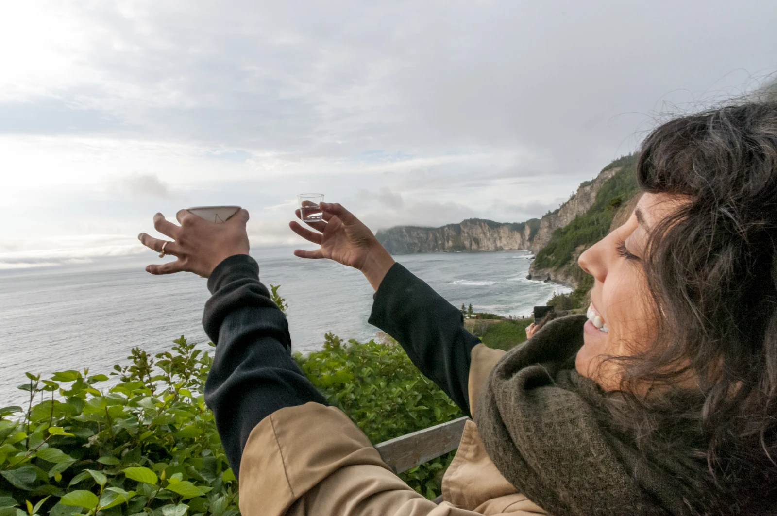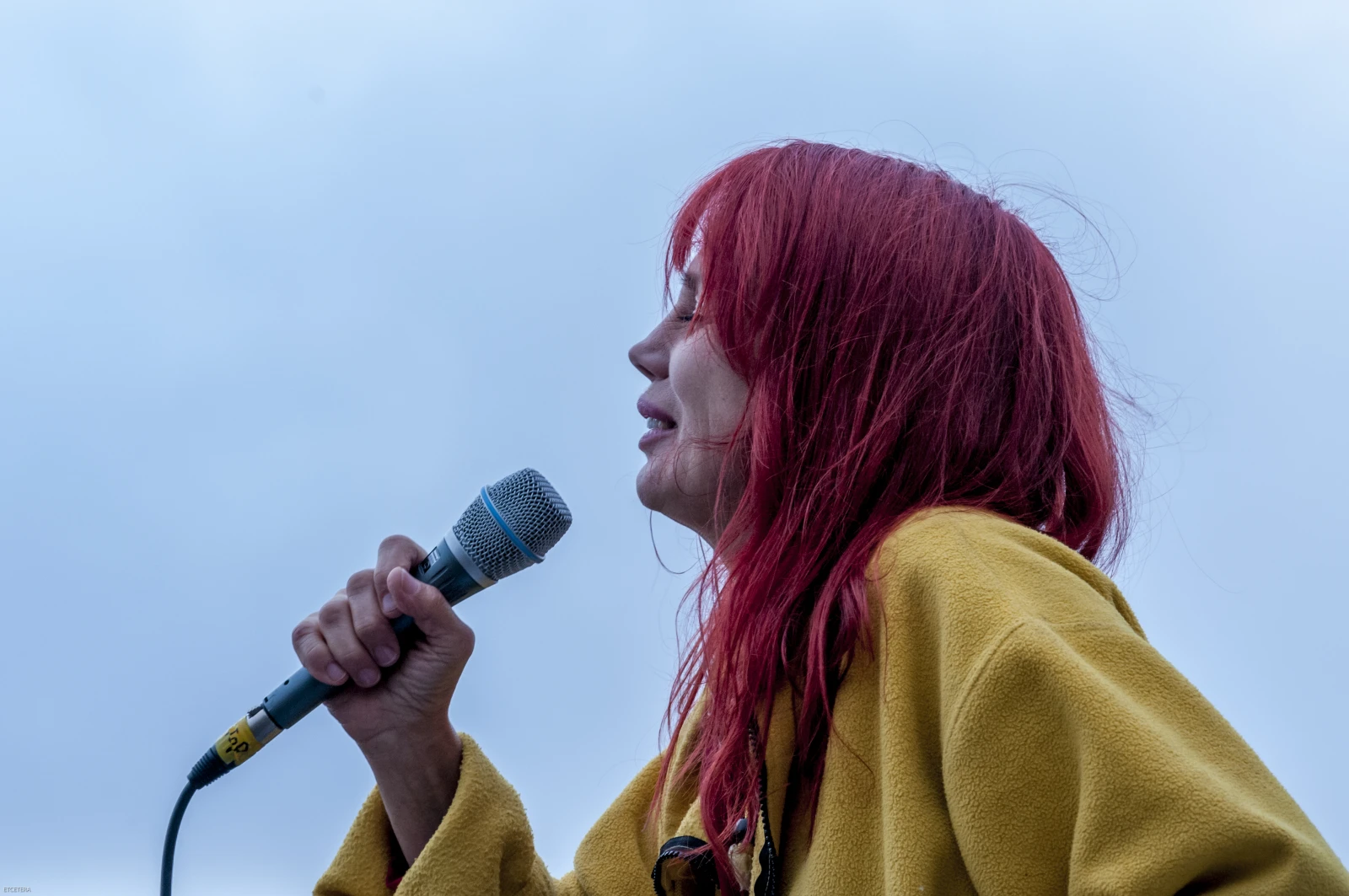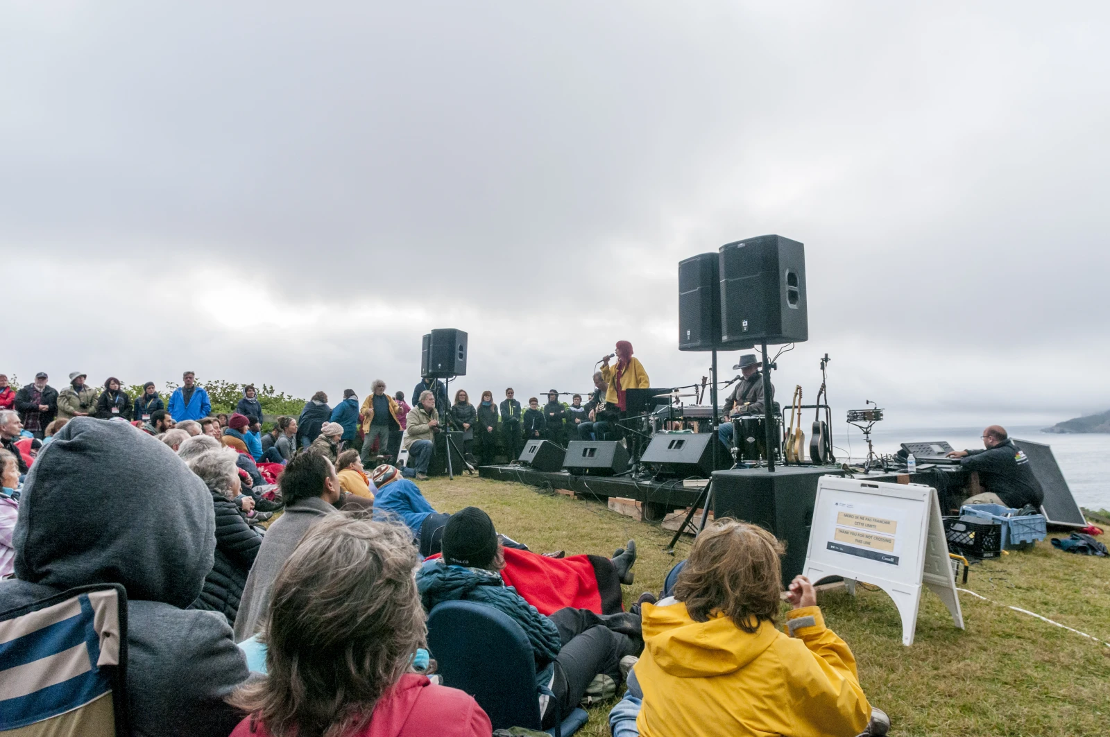 Chloé, c’est un être indescriptible et c’est parfait comme ça. Le moment qu’on allait vivre lui va à merveille. Le ciel nous boude avec ses nuages. On craint la pluie qui pourrait gâcher la fête. À 5 h, la dame aux cheveux de braise commence à ensoleiller nos cœurs et à nous faire oublier le temps. On a le bruit des vagues qui s’invite comme percussionniste. Les oiseaux qui dansent sur nos têtes. Quand La Sainte-Marie commence à entonner un poème en innu, le ciel décide d’ouvrir ses nuages au soleil. Comme si la langue de l’ancêtre avait donné le go aux cieux d’être généreux avec nous. Une chorale est venue l’accompagner à quelques reprises. C’était inouï comme concert. Merci le festival d’aller au bout du monde et au bout de vos rêves. Merci Chloé Sainte-Marie pour ta leçon de grandiose. Je bois un café et un shooter de Radoune sur le bord du cap. Il est sept du matin. C’est l’heure de quitter. La grande ville m’attends.