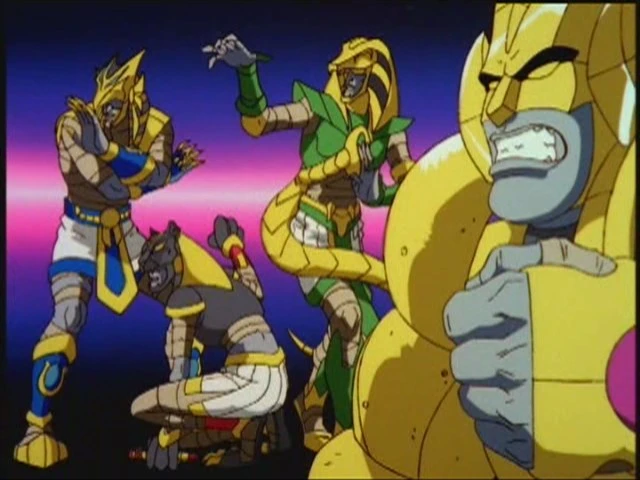 Ben oui, une autre équipe… Afin de protéger la réincarnation de leur prince dans le San Francisco des années 90, Ja-Kal, Rath, Armon et Nefer-Tina, les dépouilles momifiées des gardes du corps royaux du jeune Rapsès (fouillez-moi, c’est bel et bien Rapsès dans cet univers-là…) sont magiquement ramenés à la vie et combattent les forces du mal mythologiques de l’Égypte antique avec des super armures, des transformations à la Sailor Moon et des bolides anachroniques égyptiens parce ces jouets ne se vendront pas tout seuls vous savez. En gros, les Ninja Turtles avec des morts vivants.