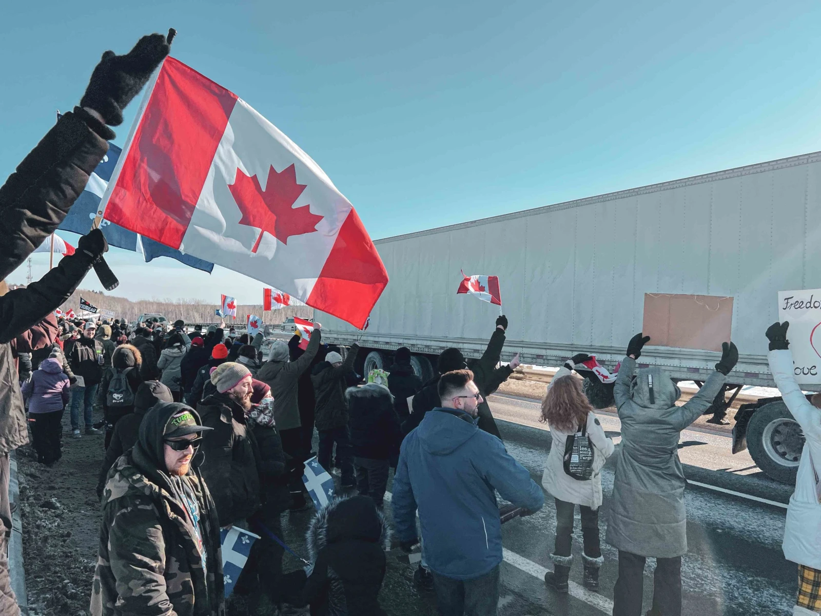 À l’image d’un Terry Fox avançant à mille chevaux-vapeur, les colonnes de camions amorcent le 22 janvier la grande traversée du territoire, attirant des marées de partisan.e.s et s’auréolant au passage d’une gloire sans précédent. Pour la mouvance sceptique, les routiers incarnent désormais des héros vertueux. On les accueille extatiques en brandissant le drapeau canadien, devenu symbole de la rébellion.