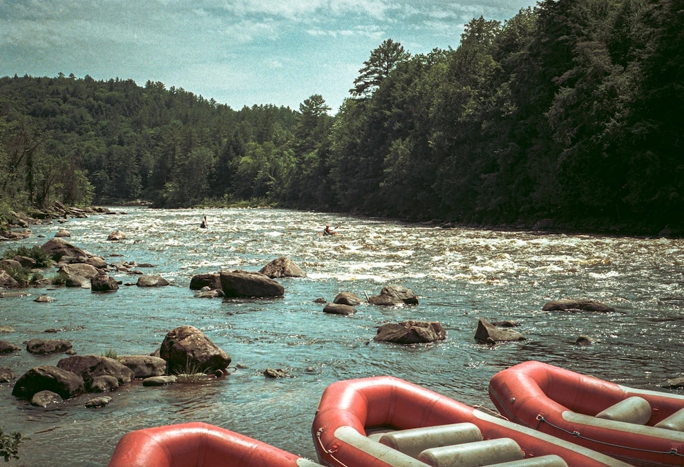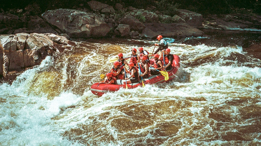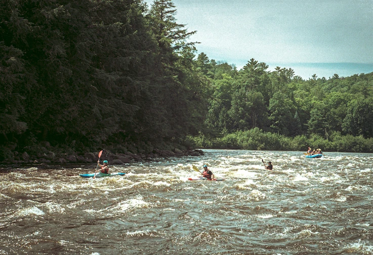 Si les kayakistes semblent tous déborder d’expérience et de confiance, pour le néophyte que je suis, on m’invite plutôt à descendre la Rouge en rafting accompagné d’un équipage et d’un guide expérimenté.