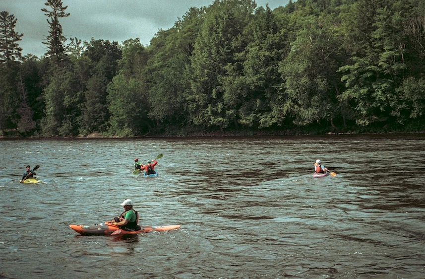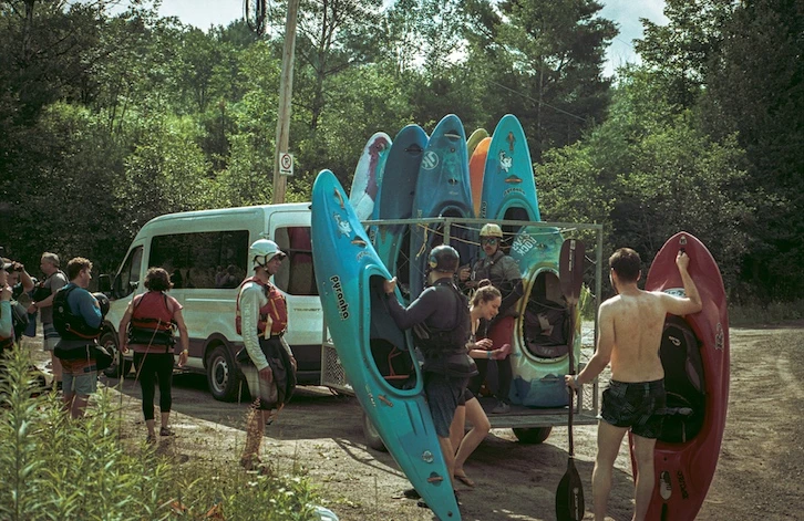 Devant l’appel de l’adrénaline, les kayakistes hurlent leur bonheur en faisant aller leurs klaxons dans la forêt. Sur les rives, les participants s’étirent alors que d’autres installent leurs GoPro pour capturer leurs aventures. « Bonne descente ! », se lancent-ils avant de glisser vers le grand terrain de jeu.