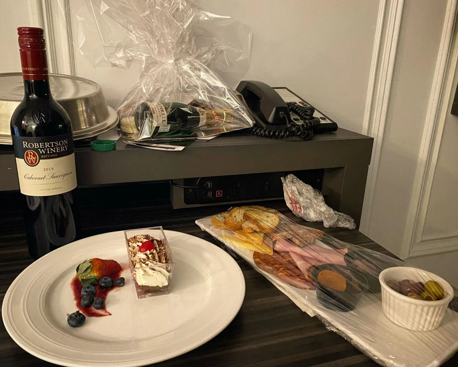 Comme je suis un journaliste-vedette, quelques douceurs m’attendent néanmoins dans la chambre 110, gracieuseté de la directrice du marketing. « Bon spectacle! », dit la petite carte accompagnant une mini-bouteille de mousseux et des pâtisseries délicieuses.