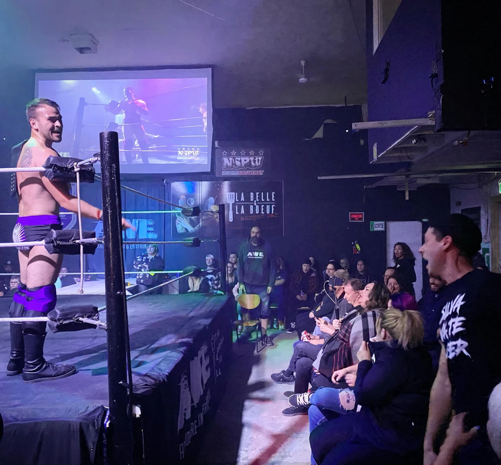 – On veut de la lutte tabarnak!, s’égosille quelqu’un dans la salle.