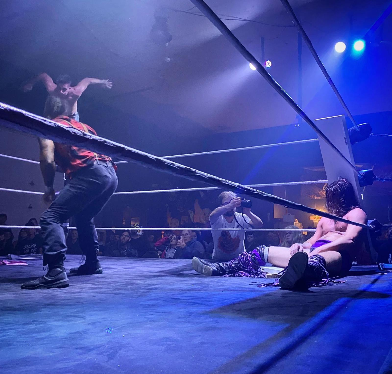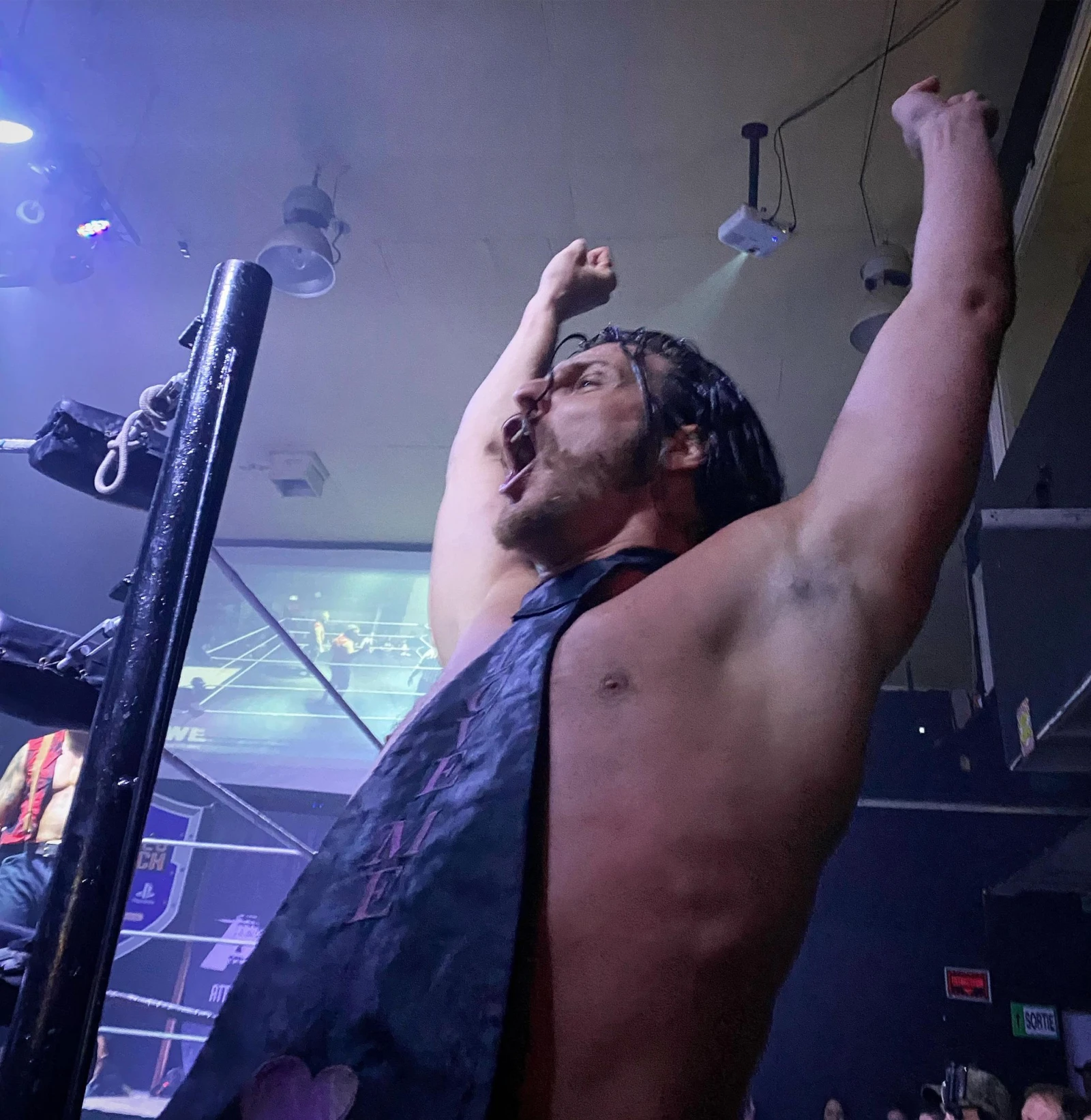 La frénésie est palpable dans le backstore rudimentaire. Les lutteurs enfilent leur costume dans tous les recoins. Le légendaire Trifluvien Alex Silva se change directement dans un couloir, tout près du non moins célèbre DGenerate (le Jonquiérois Philippe Munger). « Ici la foule est wild. Les murs vibrent…», m’avertit le premier.