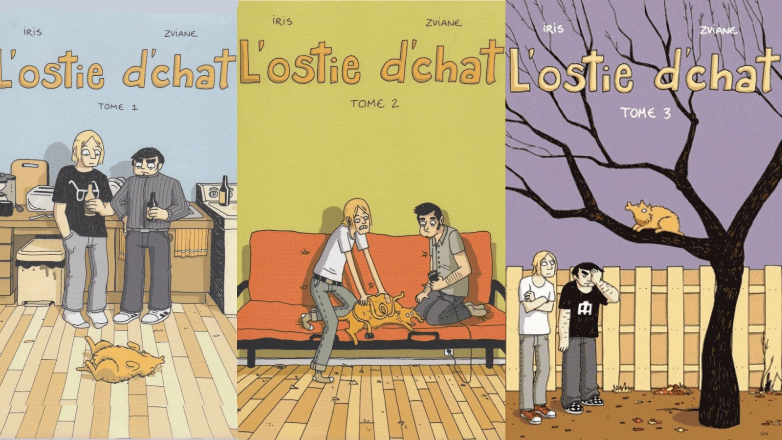 Les deux bédéistes québécoise ont imposé un félin à d’anciens colocs dans une série de bande dessinée judicieusement nommée L’ostie d’chat. Depuis notre tentative de domestication, nos adorables compagnons prennent plaisir à nous pourrir la vie. C’est comme une relation amour/haine. Un contrat tacite entre deux espèces pas faites pour cohabiter dans le même écosystème. C’est qui le smatte qui a pensé qu’une mini-machine à tuer, cousin de la fesse gauche avec le roi de la jungle, pouvait faire un bon animal de compagnie? Surtout qu’on les contraint à devenir quelque chose qu’ils ne sont pas. Ils se mettent alors à agir de façon complètement détraquée.