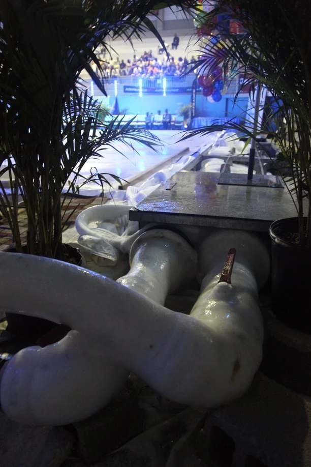 On dit que l’événement a coûté très cher: 300 000 $US, selon les organisateurs, en grande partie financée par le ministère du tourisme haïtien. Probablement plus avec tous ces retards. Seulement pour maintenir la glace, on raconte qu’un frais de 1600 $US par jour est nécessaire en gaz pour les génératrices. Ça fait 10 jours que la glace est en place. Le spectacle reprendra ce soir et demain.