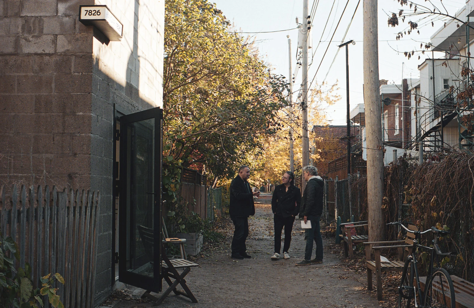Je roule en vélo dans l’étroit labyrinthe de ruelles qui sillonne le cœur du quartier Villeray lorsque je tombe nez à nez, entre les rues Saint-Gérard et Foucher, avec l’artiste visuel et fondateur du Hangar 7826, Gilles Tarabiscuité, avec qui j’ai rendez-vous. Il allume une cigarette alors que le commissaire Laurent Vernet et l’artiste Emmanuel Galland nous rejoignent pour papoter autour du singulier projet érigé devant nous.