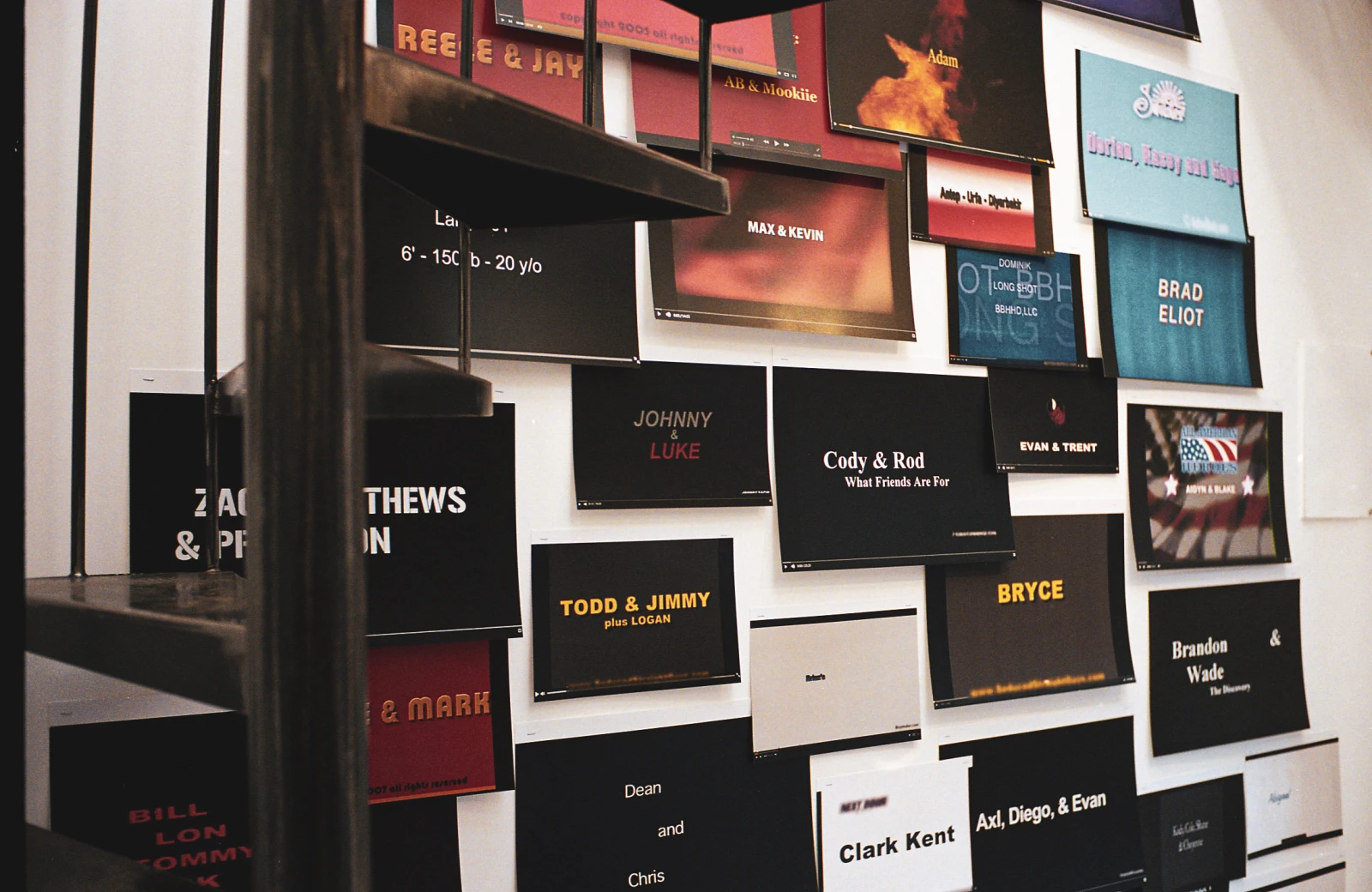 L’exposition de novembre, Mes dates / Close friends, dévoile l’œuvre de Galland, une mosaïque de collages post-it grand format. « C’est un énorme gangbang, compulsif et évanescent », décrit l’artiste. Ses rencards, qui placardent les murs, sont des captures d’écran de génériques de films pornographiques gais, dévoilant un univers tant identitaire que typographique : « Une connivence silencieuse, anonyme. Un jeu sur les noms, la fiction. Le terrain graphique du juste avant, à la limite de la peau. Tout cela en respectant bien sûr le voisinage, dit-il, sourire en coin. J’ai toujours aimé faire le portrait décalé d’une communauté. »