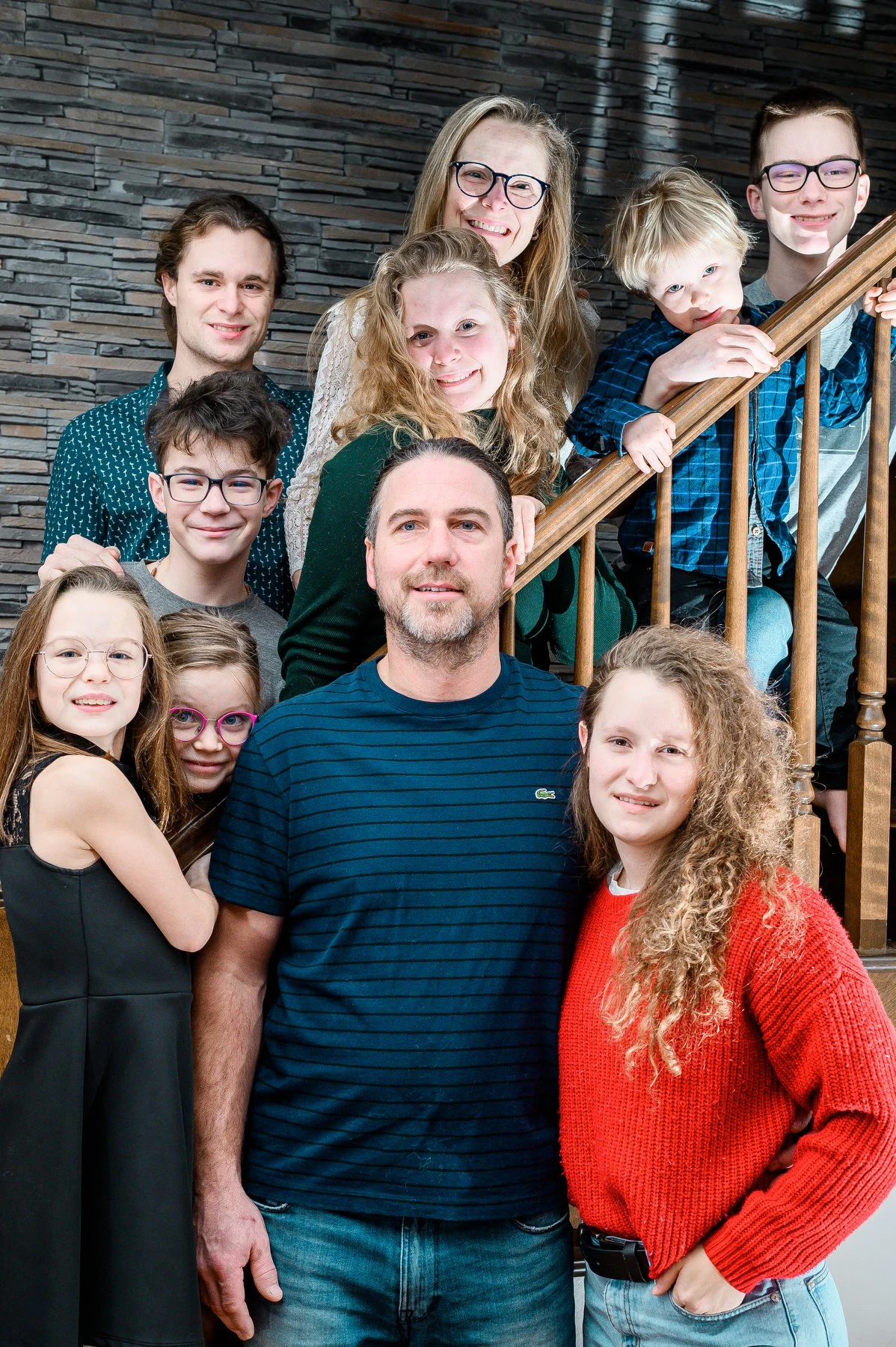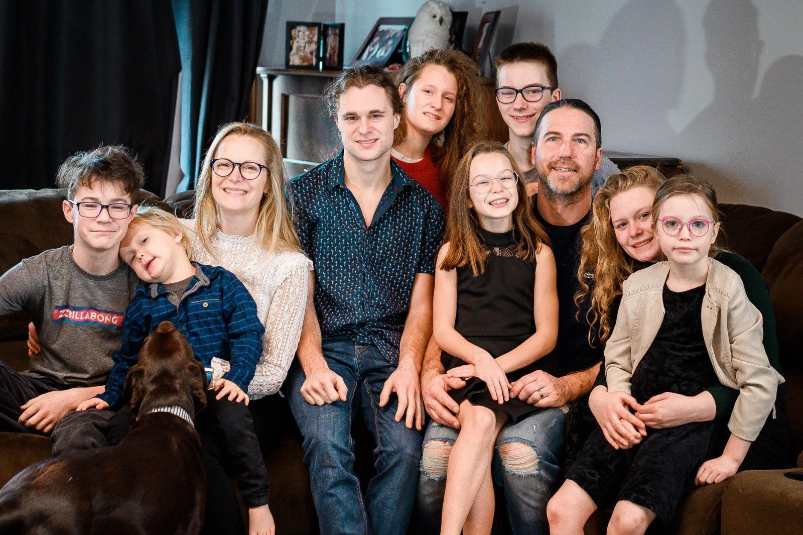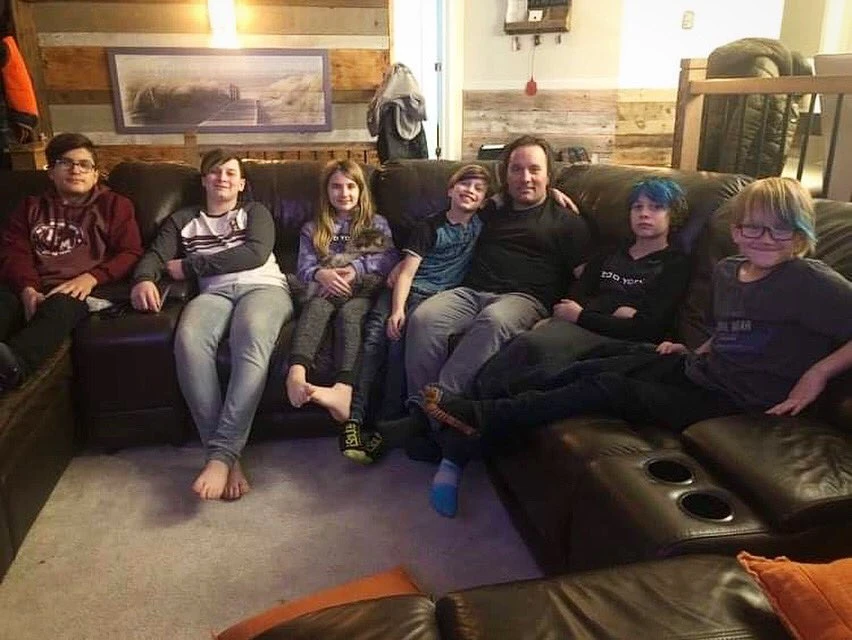 Matheo, 9 ans, Frederick William 10 ans, Zackary 12 ans, Océane, 12 ans, Lucas 15 ans et Jeremy 15 ans et Pascal. Absents sur la photo: Allyson 18 ans, Sheldon 17 ans, Josiane 37 ans.