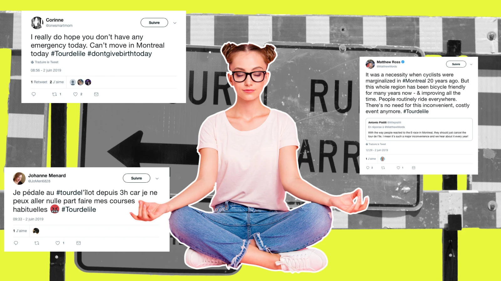 Ruth Kovac, par exemple. En lisant La Presse, j’ai appris que la conseillère municipale de Côte-Saint-Luc souhaitait le malheur des cyclistes qui participeraient au Tour de l’Île. Elle l’avait même spécifié sur Twitter : « Il y a déjà beaucoup de détours à cause de chantiers de construction. Ça tient les résidents en otage, c’est irresponsable et égoïste. J’espère qu’il pleuvra fort toute la journée. »