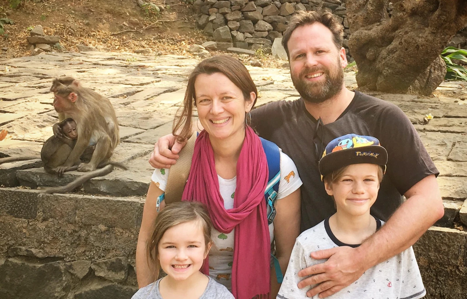 Il y a d’abord Simone, six ans, dont les moments forts jusqu’ici sont nos cinq jours d’escale à Paris en trottinette avec sa cousine Margot et la piscine de notre hôtel indien. Elle a été très excitée de voir des singes, mais bouleversée chaque fois qu’on traverse la rue où on se sent comme dans le jeu Frogger (Google!). Tout le monde veut se faire photographier avec elle aussi.