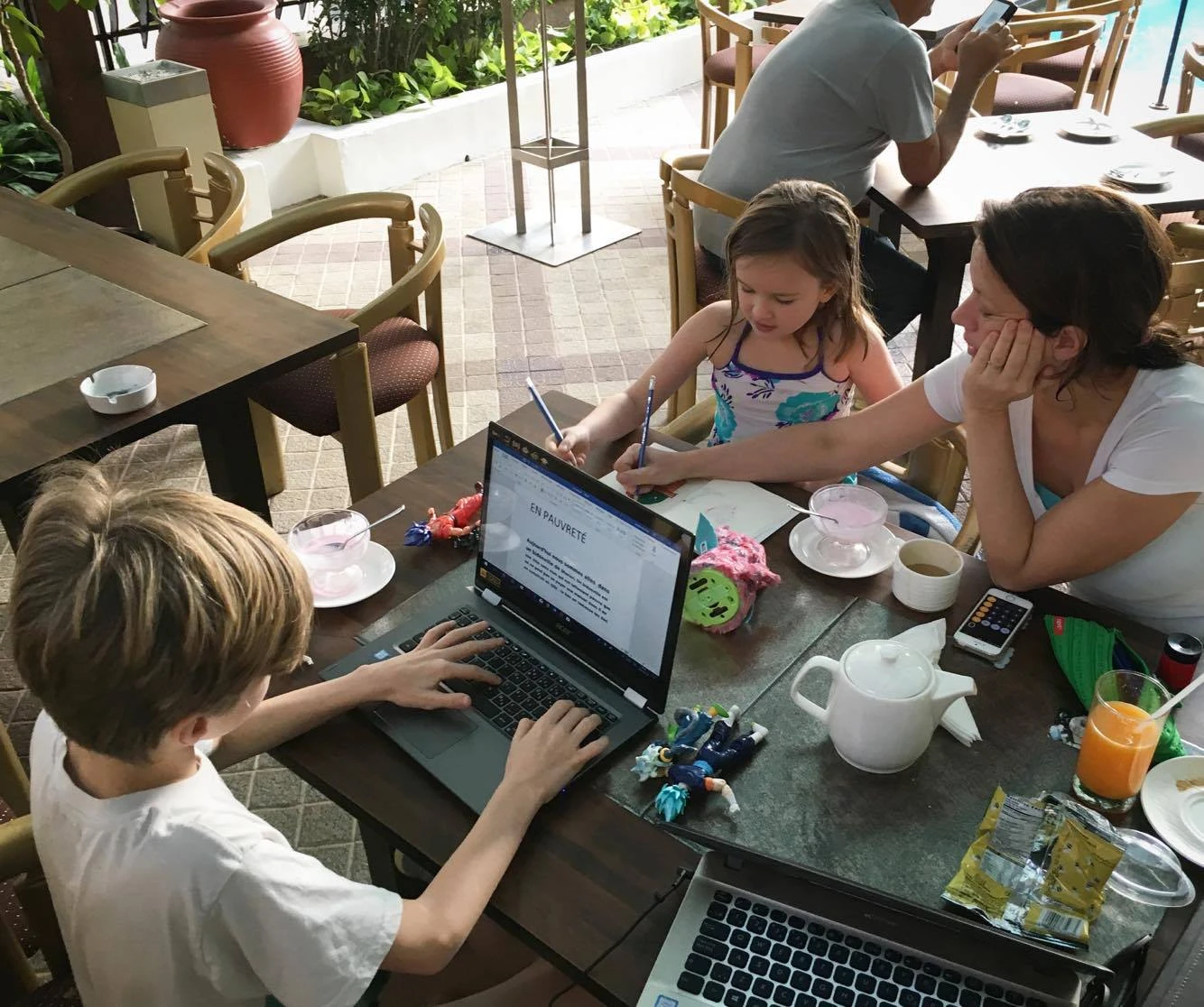 Victor, dix ans, impressionne. Il est curieux, se débrouille en anglais et ose la bouffe locale. Par contre, le sevrage en Wifi s’annonce difficile pour cet esclave de Fortnite.