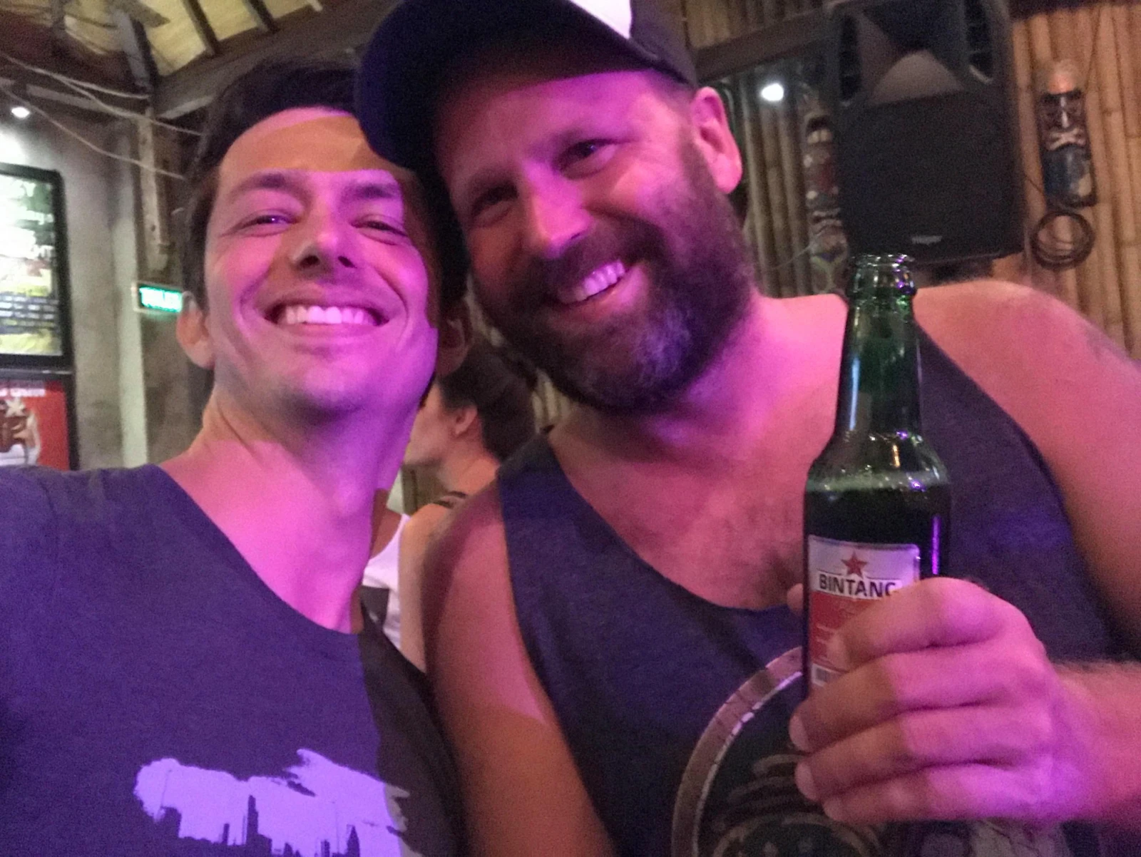 Le lendemain, j’accompagnais Mononcle Éric à Bali pour son départ, mais j’y allais aussi accueillir nos bons amis Rock et Gitane, en visite en Indonésie pour un mois.