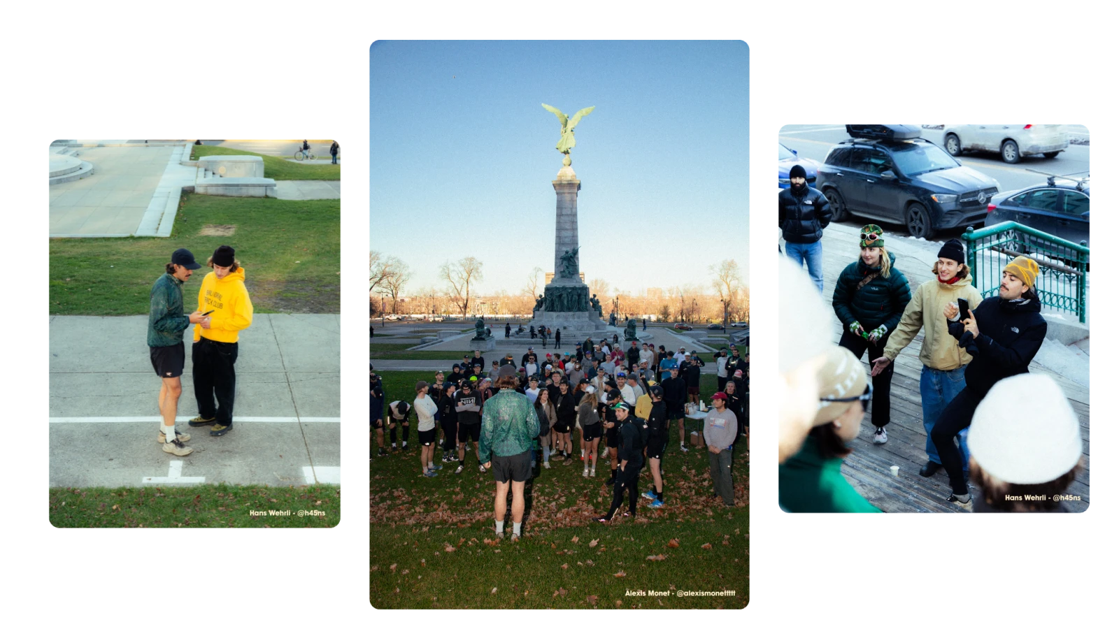 Le projet est jeune, mais donne l’impression d’avoir toujours existé. Avant même de souffler leur première bougie, les trois complices avaient déjà collaboré avec des marques comme On Running, Arc’teryx et Hoka avec les fameuses courses Unsanctioned à Montréal et Québec — des événements où courir est avant tout un prétexte pour se rassembler. Je dois d’ailleurs à cette sortie la plus belle photo de mon feed Instagram :