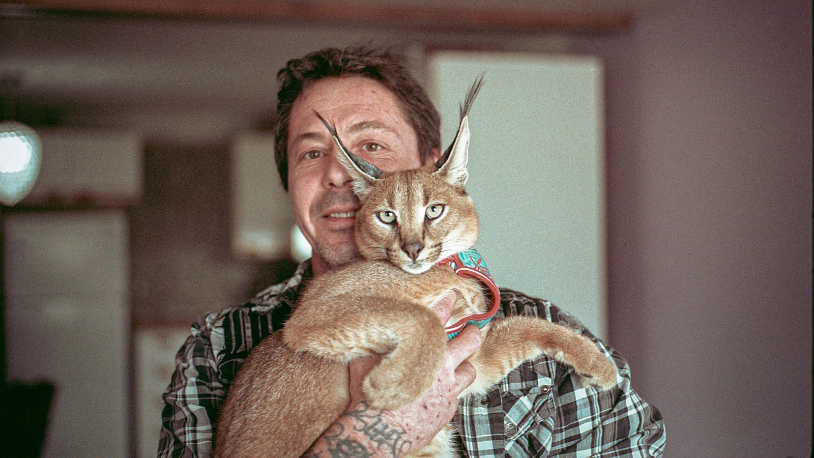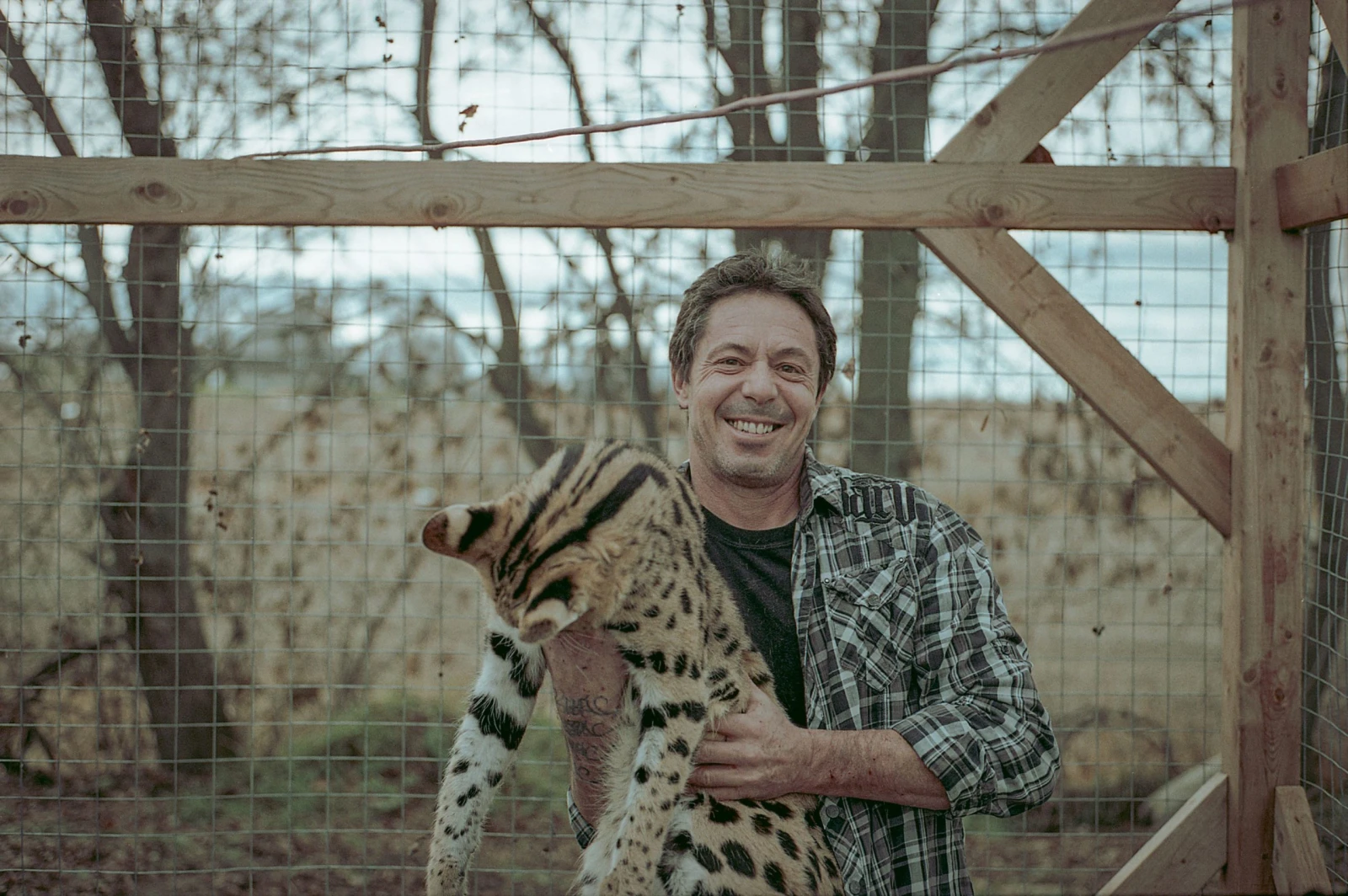 Un caracal dans les bras, il réussit tant bien que mal à me serrer la main. Ce qui brille dans ses yeux, je le devine comme de l’amour pour ses gros chats, pas si sauvages que ça.