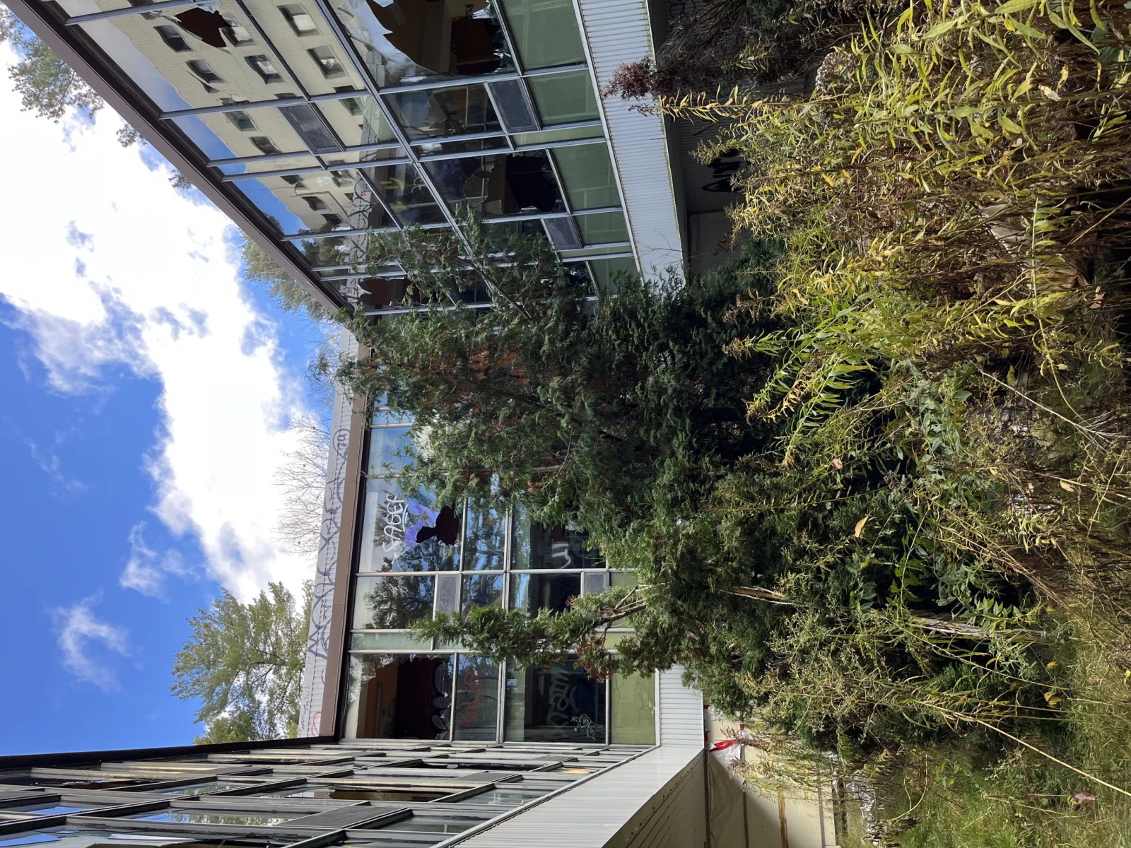 Le rendez-vous est établi dans le stationnement d’un centre communautaire planté en plein milieu de tours de condos fraîchement construites. Autour, des joggeur.euse.s et des propriétaires canin.e.s profitent du beau temps en cette fin d’octobre dans ce quartier apparemment assez aisé. Rien ne laisse présager qu’un lieu abandonné vétuste se trouve dans les parages.