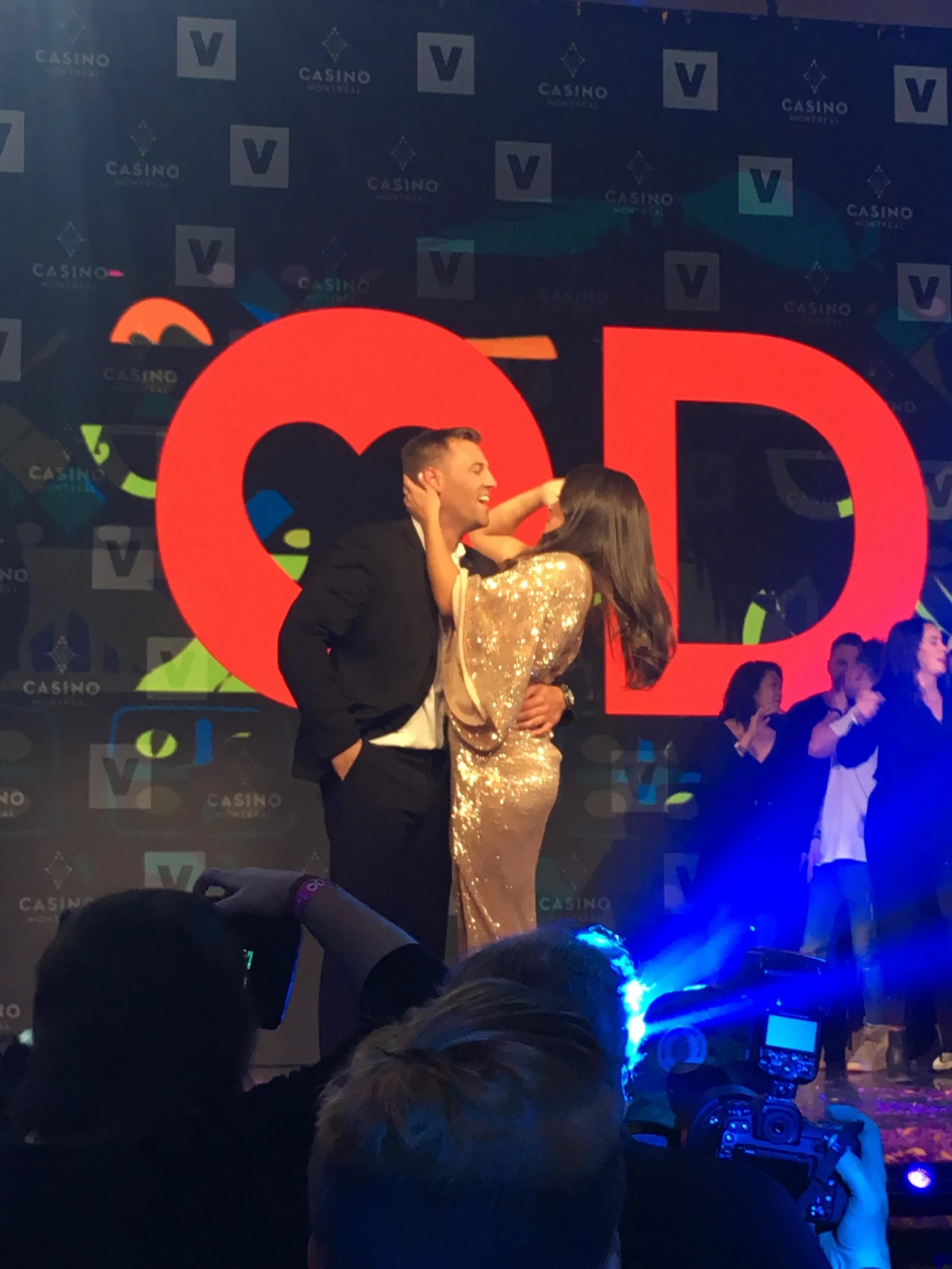 Grâce à mes contacts (allo Marissa!), je me ramasse quinze minutes plus tard dans un bureau backstage avec le couple gagnant. «On était les underdogs, je pense que les deux on ne s’attendait pas à une aussi grosse dose d’amour», commente à chaud Math, sur un nuage.