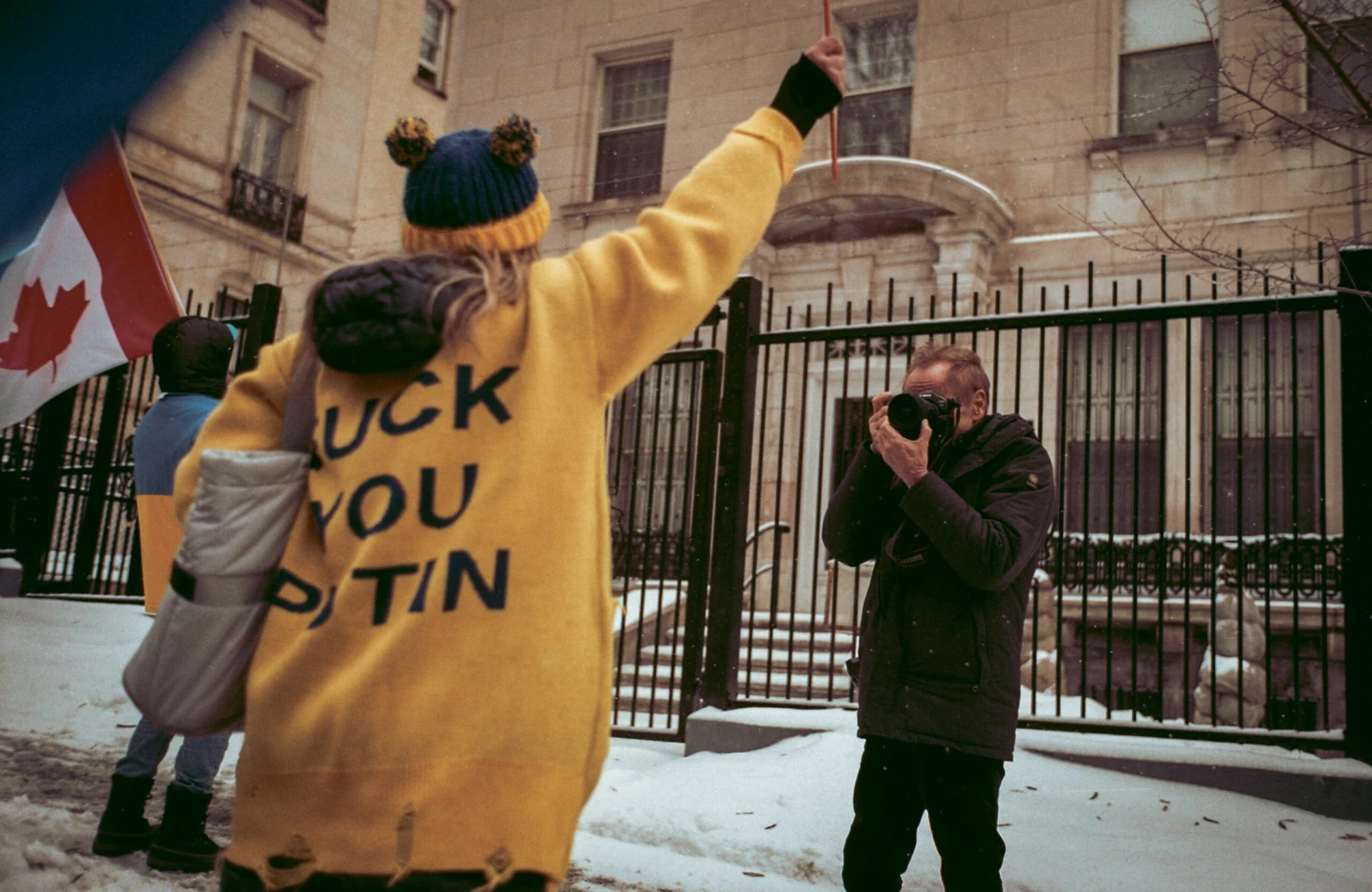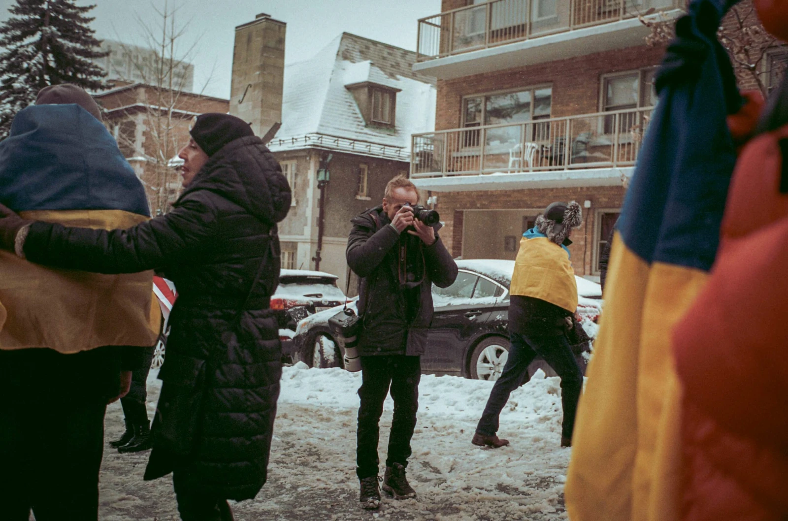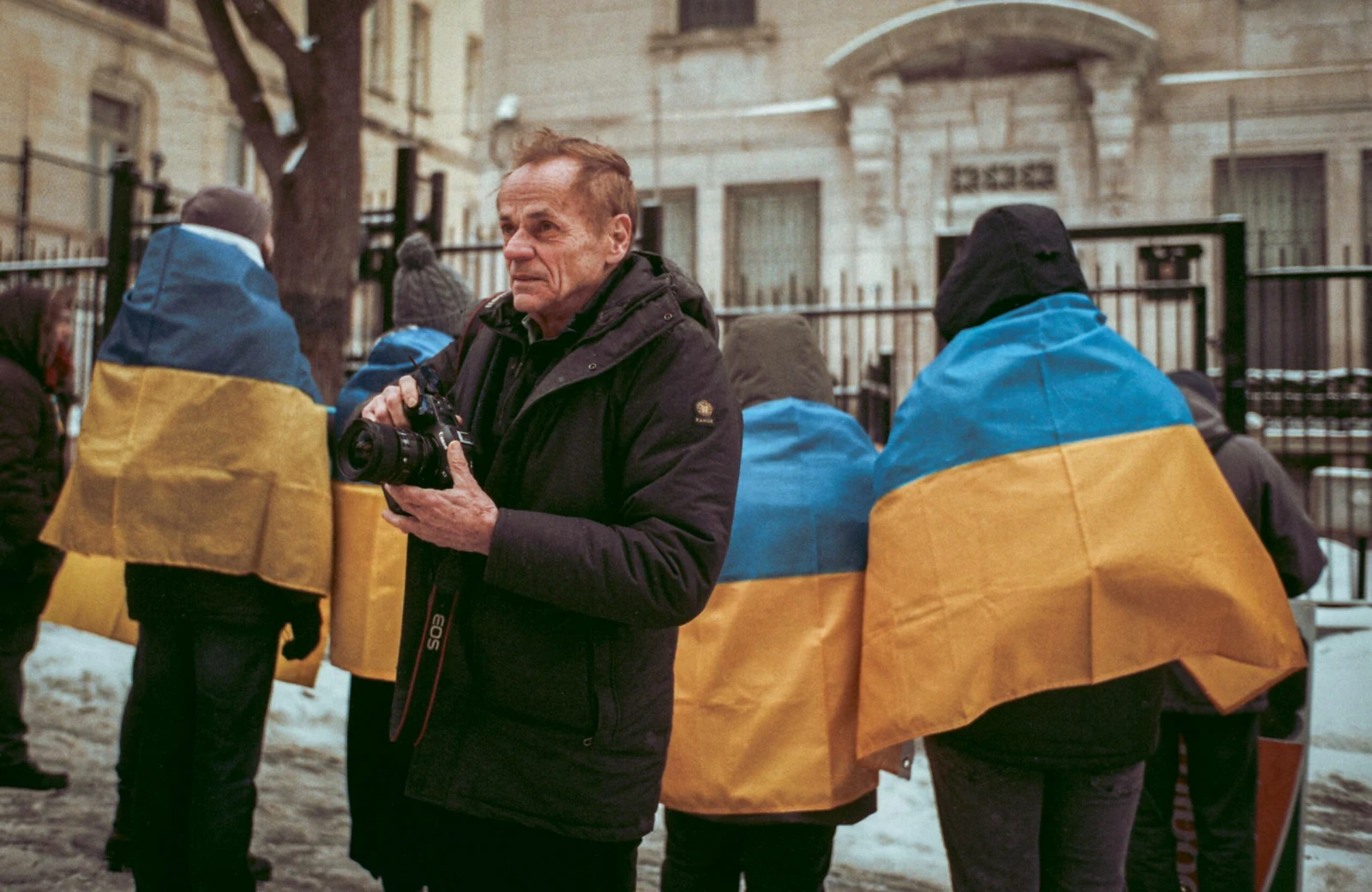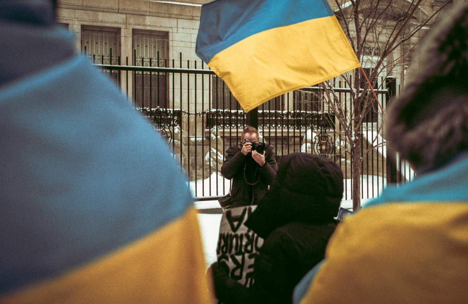 Jacques m’invite à rencontrer sa « bande d’Ukrainiens » : des manifestants se rassemblant devant le consulat russe pour exprimer leur opposition à la participation de la Russie aux Jeux olympiques de Paris.