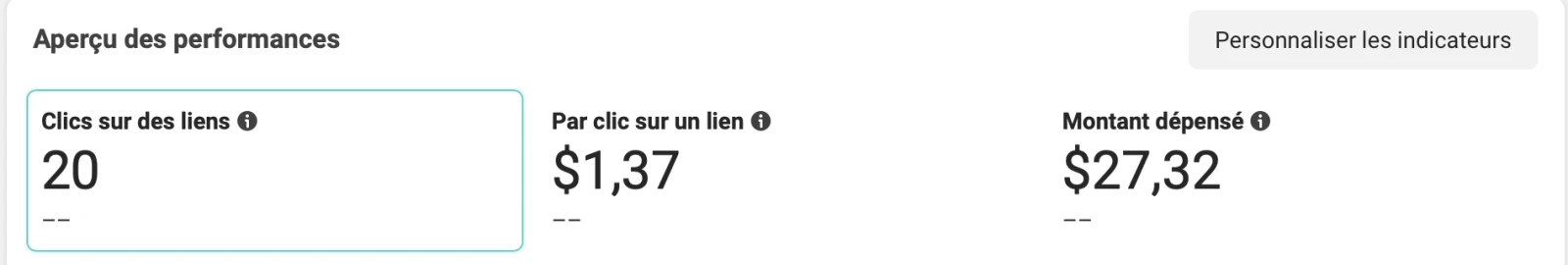 En divisant l’argent dépensé par les 20 curieux et curieuses, on remarque que ça m’a coûté 1,37 $ par usager qui est venu visiter mon profil.