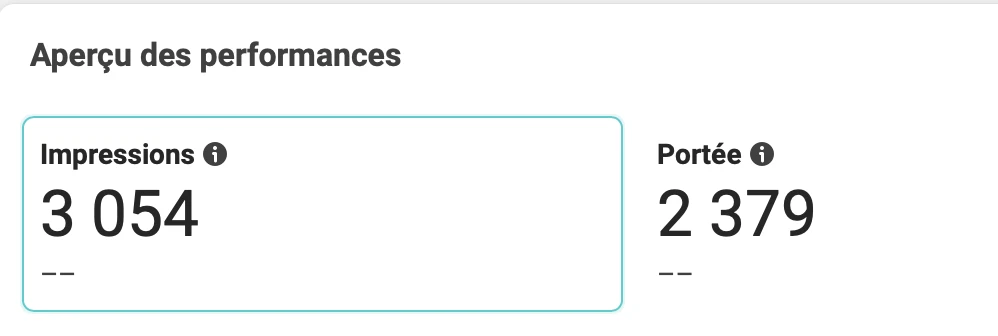 Selon les résultats, 20 personnes auraient cliqué sur mon profil après avoir été exposées à une des trois publicités approuvées. Mine de rien, afin de trouver 20 personnes intéressées, Instagram a dû présenter mes publicités 3 054 fois à 2 379 personnes.