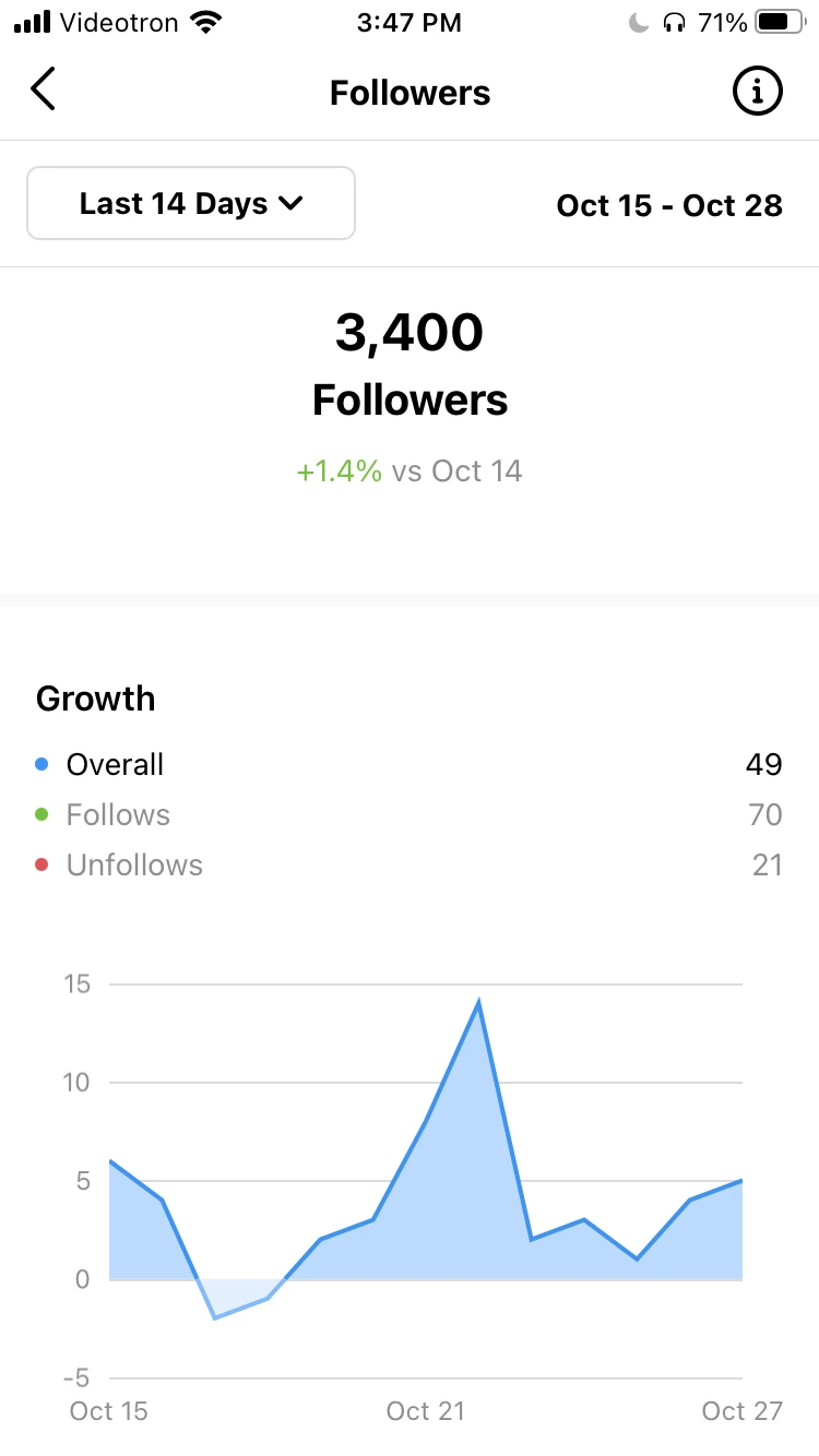 Par contre, je dois préciser que les publicités seules n’ont pas été la source de cette augmentation. Durant cette période, j’ai publié une mini-anecdote qui est arrivée le jour même en reel. Comme c’était une histoire reliée à mon ethnicité, quelques personnes l’ont partagée, et ça explique le pic d’abonnement qu’on peut voir sur le graphique.