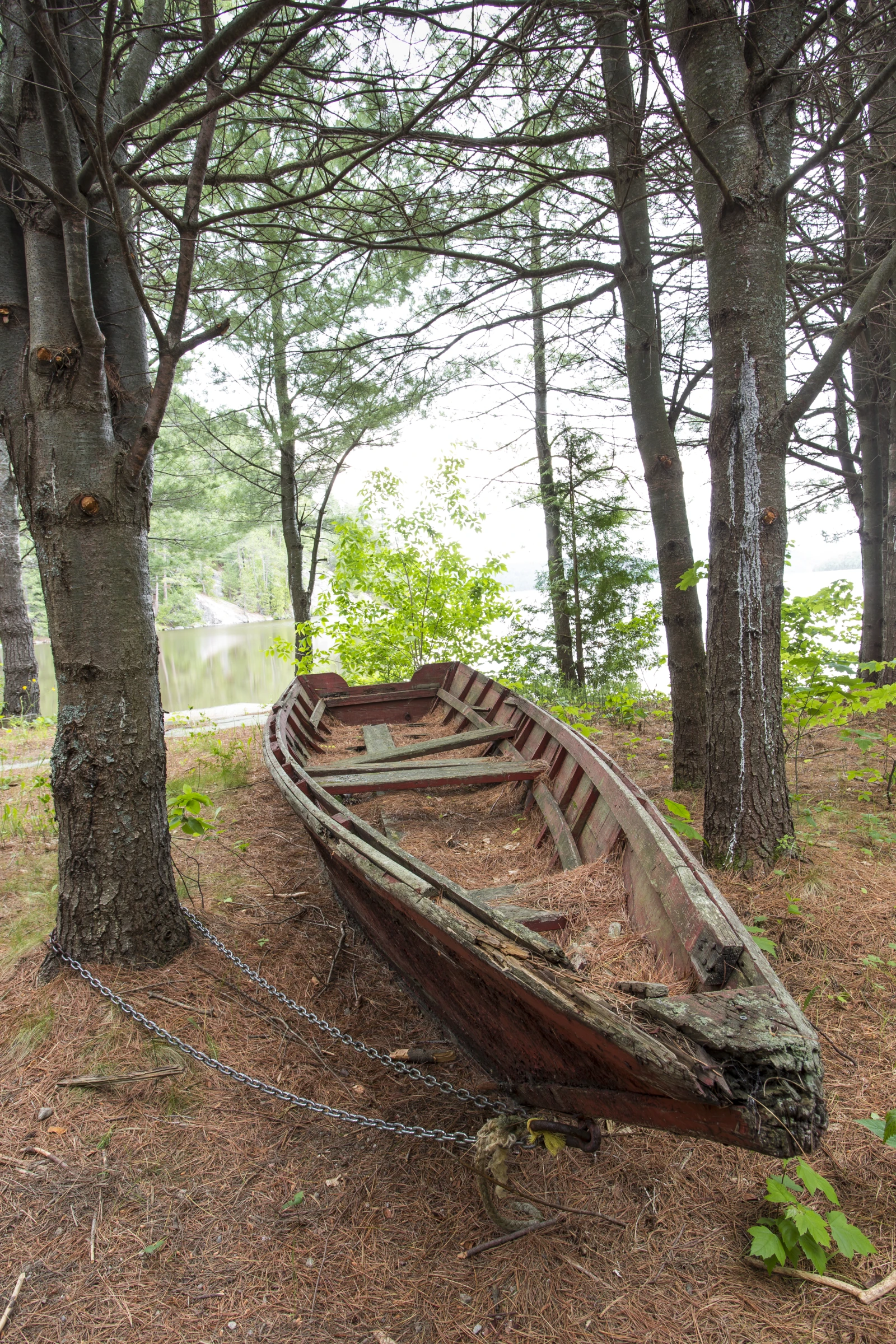 Je n’ai qu’une journée complète de congé devant moi, alors je décide d’en profiter autant que je peux. YOLO! Il est 7 h, je repars en randonnée. Je me dépêche, parce qu’à 10 h, j’ai rendez-vous pour mon baptême de rabaska. Cette fois, au lieu de grimper la falaise, j’emprunte le chemin qui longe le lac. Seule au monde, je découvre les vestiges de l’ancien poste de flottage de bois : l’auberge Jaudoin, l’énorme chaîne pour treuiller les chaloupes, la vieille maison du surintendant. Les draveurs qui travaillaient là en 1890 devaient tellement avoir la chienne, dans ce coin perdu et sans moyens de communication modernes…