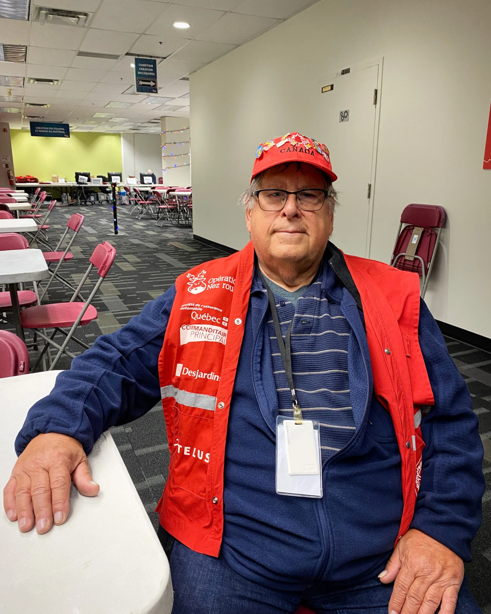 Puis, il y a Jacques, un vétéran qui donne ses heures sans compter depuis maintenant 13 ans. Le bénévole de 76 ans (qui ne les fait pas) connaît tout le monde dans la place. C’est même lui qui gérait notre formation vidéo, tout à l’heure. « Je suis devenu bénévole pour socialiser, surtout. J’ai rencontré des gens qui sont devenus mes amis », m’explique ce sympathique retraité, affichant fièrement sur sa casquette les épinglettes des treize éditions auxquelles il a pris part.