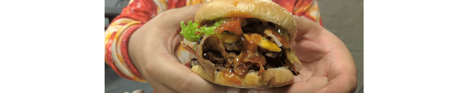“Une demi-livre de bœuf, du bacon, du fromage, des oignons, le tout nappé d’une sauce Bull’s-Eye”