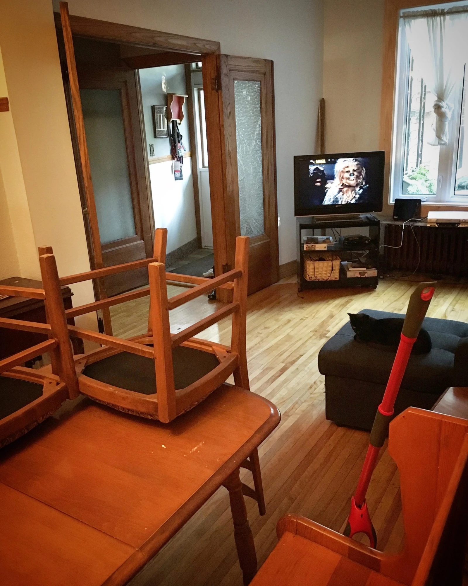 En soirée, mes parents (qui habitent au deuxième) viennent souper dans un lourd silence, puisque je ne peux pas utiliser mon haut-parleur bluetooth, Spotify ou QUB musique.