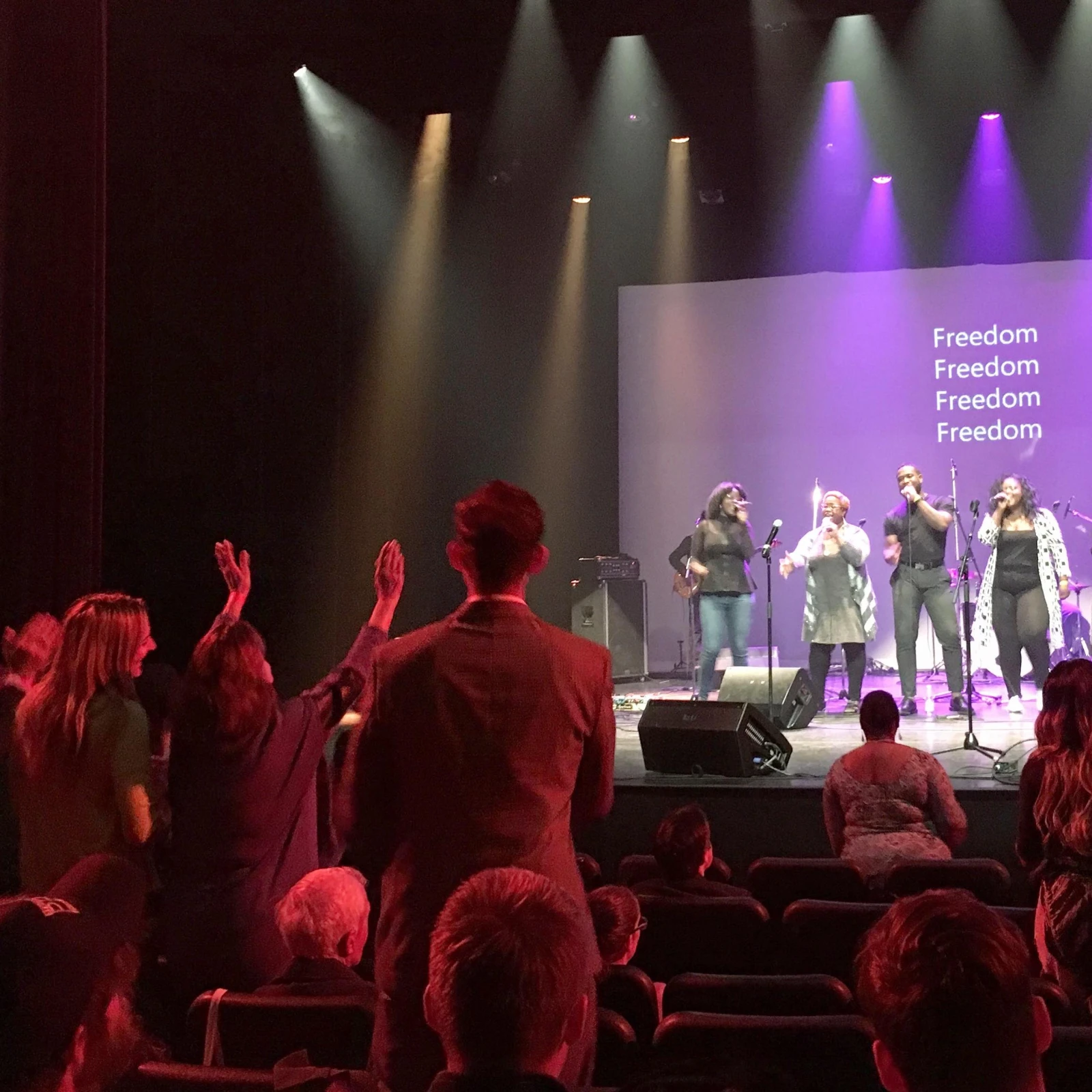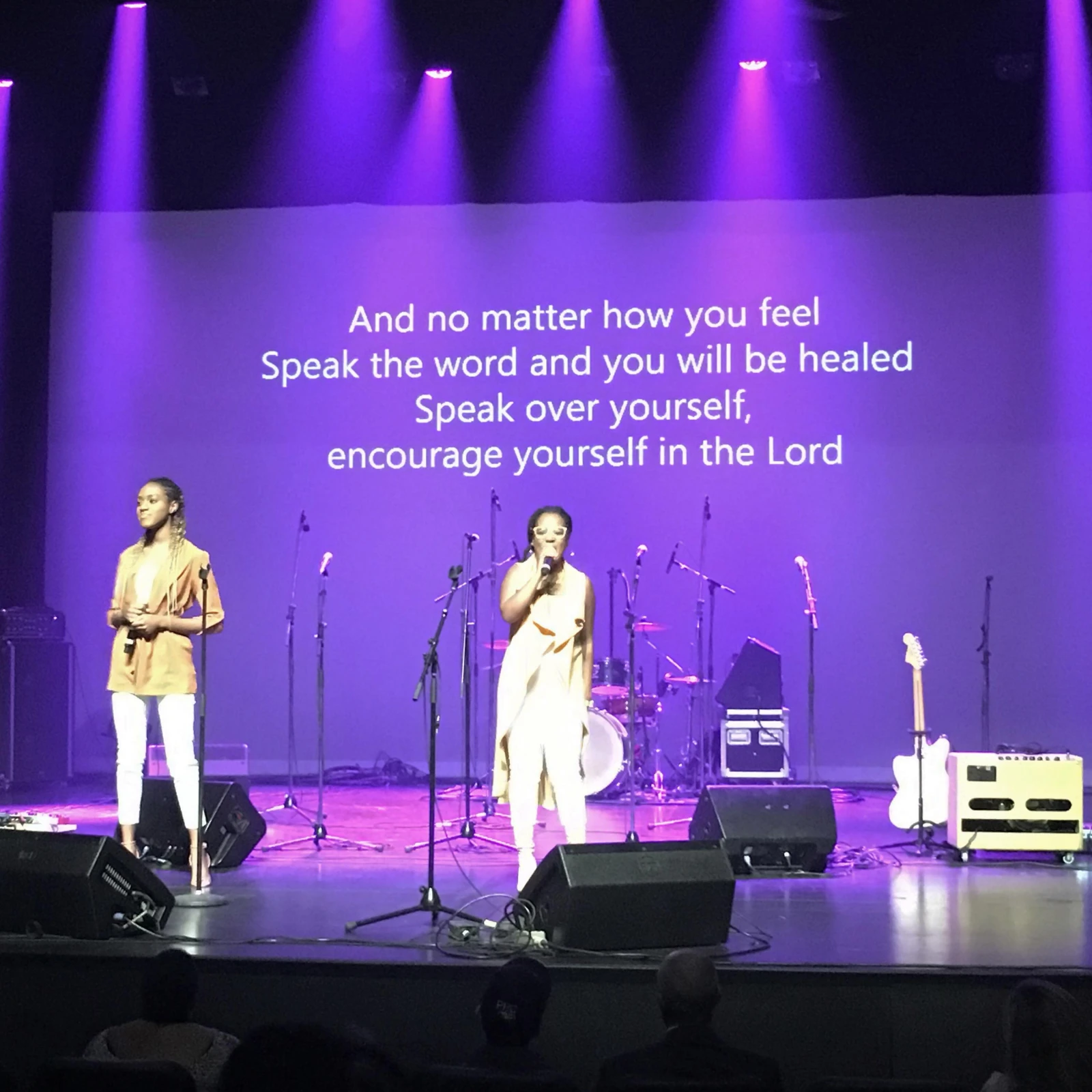 Les gens scandent « alléluia » quand je pousse les portes de l’amphithéâtre.