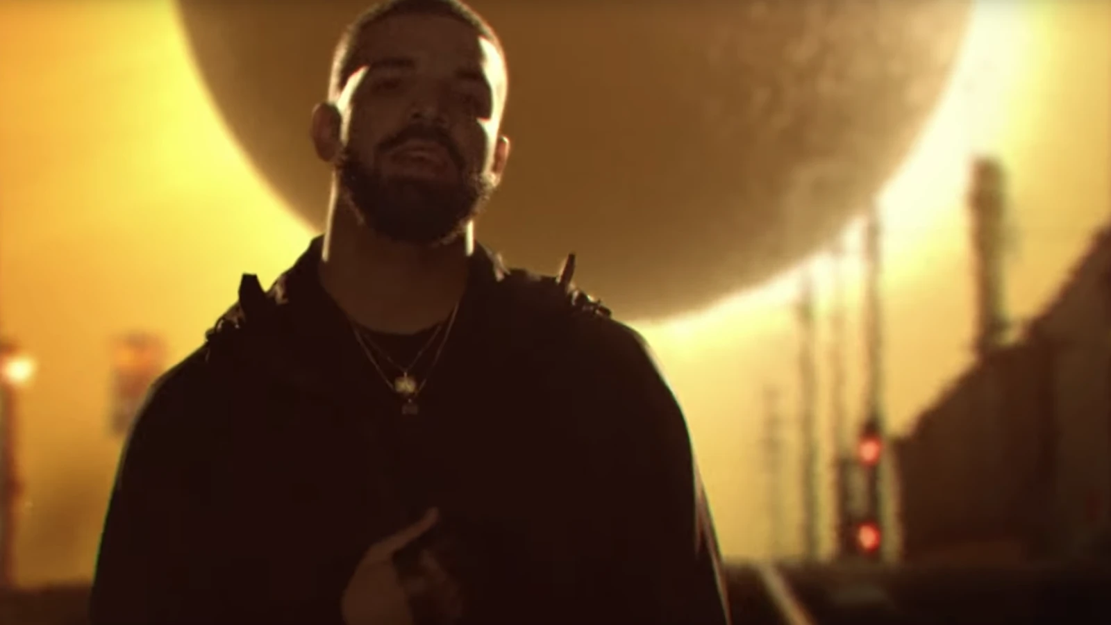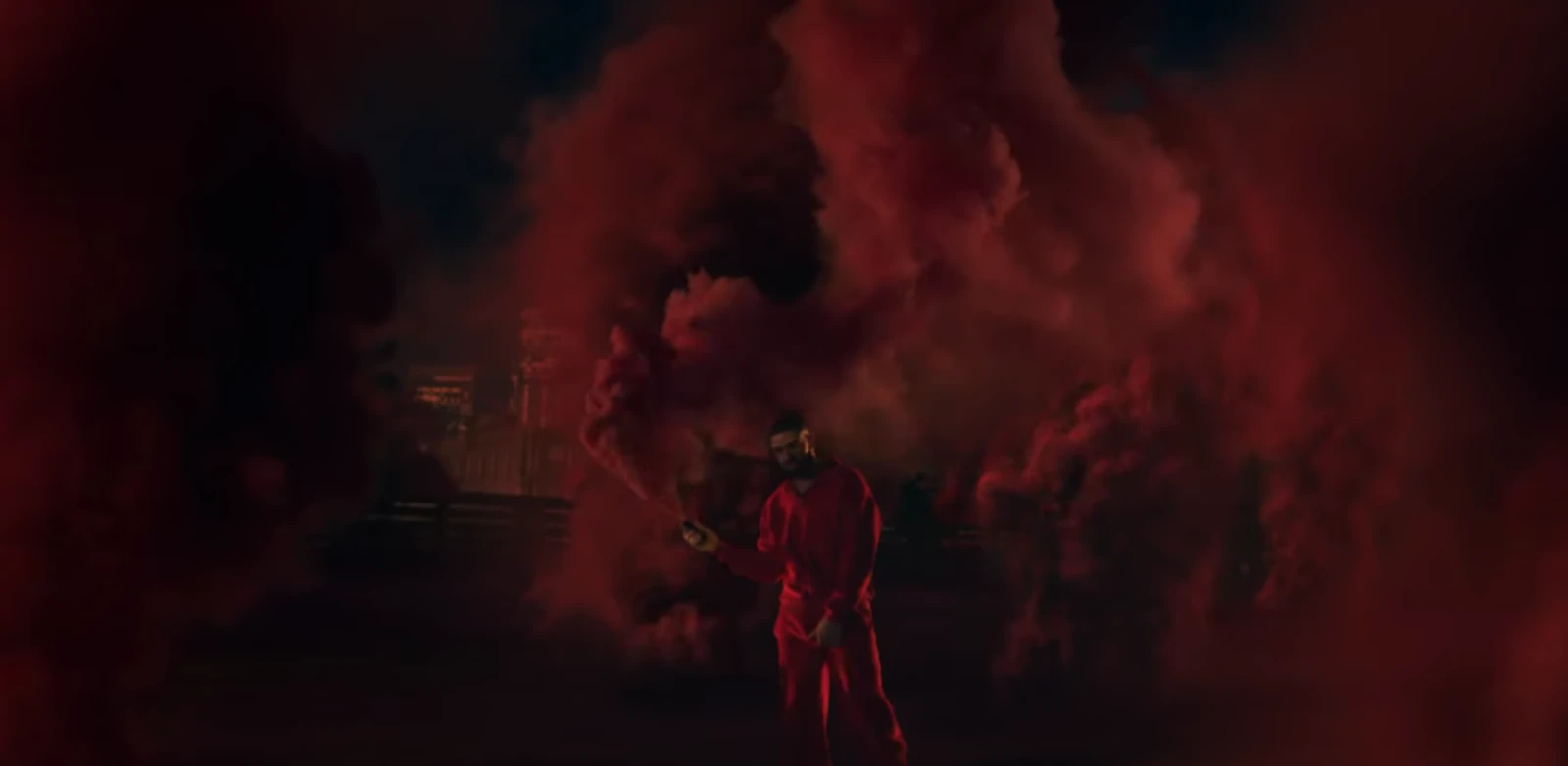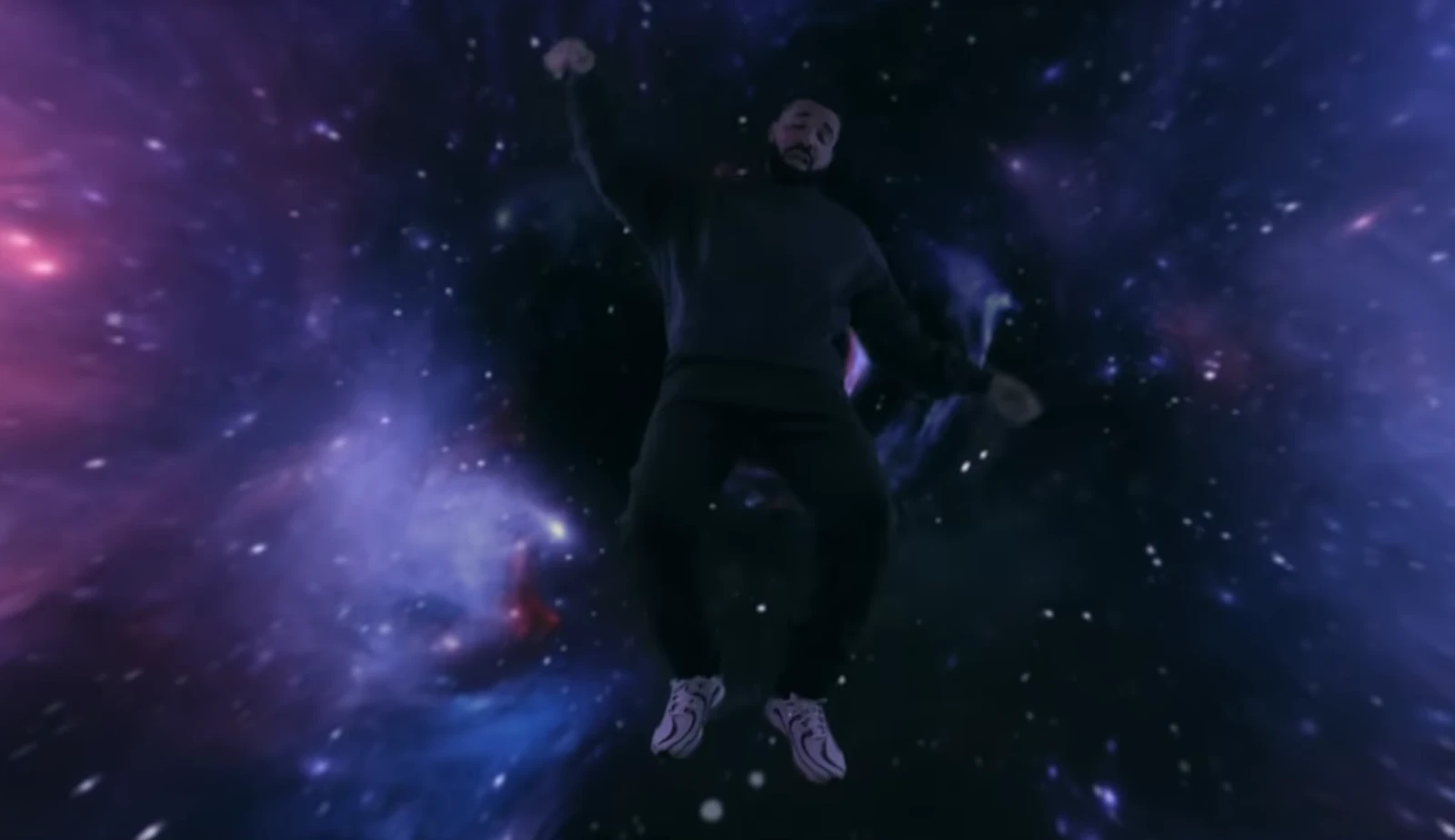0:41 – Bon qu’est-ce que tu fais là, Drake? Une main sur le paquet et l’autre qui tient un fumigène rouge. T’as l’air d’un bon délinquant sexuel. Les jeunes ont peut-être raison de se sauver, finalement.