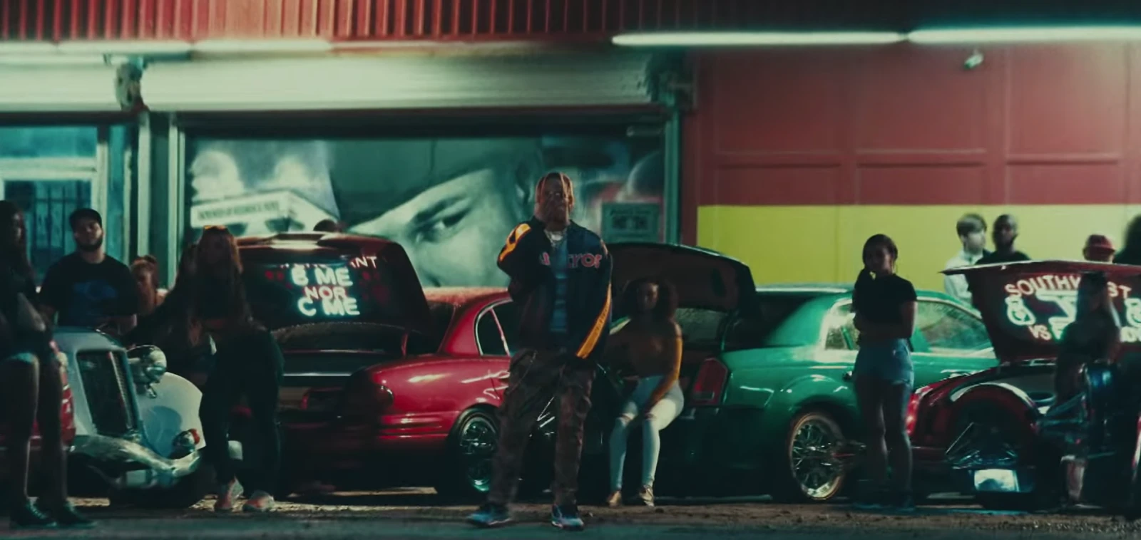 2:13 – Quatrième allusion. Fait intéressant, Travis verse pour la première fois à la culture blanche avec un p’tit move de danse à la Elvis Presley. À moins que ce soit juste un clin d’oeil au Motown des vieilles années. C’est dur à dire avec Travis Scott. Yca pas mal juste lui qui comprend ce qui se passe dans sa tête.