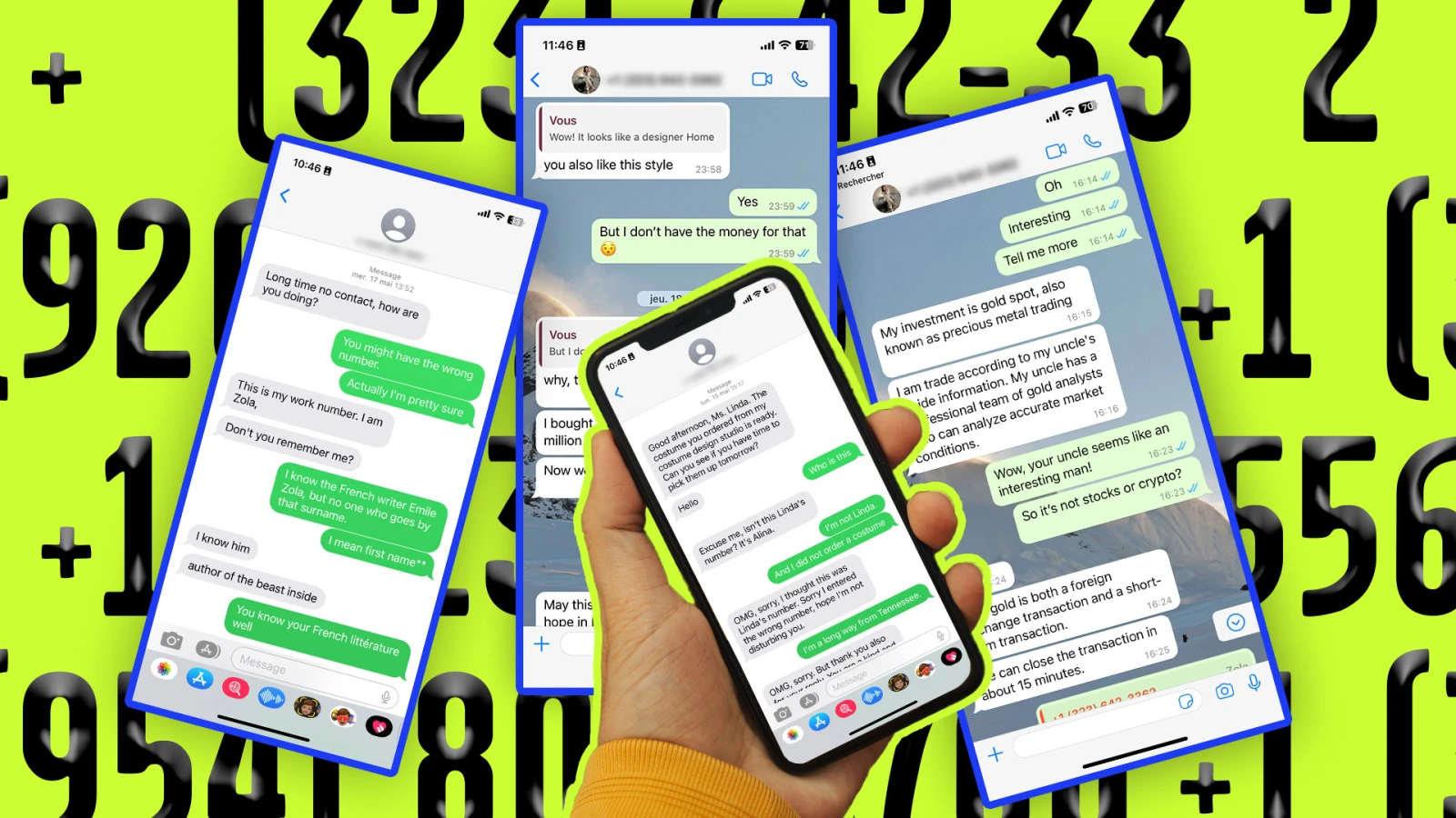 Que se passe-t-il quand on engage la conversation avec ces inconnu.e.s? Je m’attendais à ce que, très vite, on me propose une opportunité d’affaires iNcRoYaBLe, ou qu’on tente de me séduire afin de me « sextorquer ». Et toujours au fond une question un peu incongrue : et si, comble du hasard, ces personnes s’étaient réellement trompées de numéro? Petite enquête.