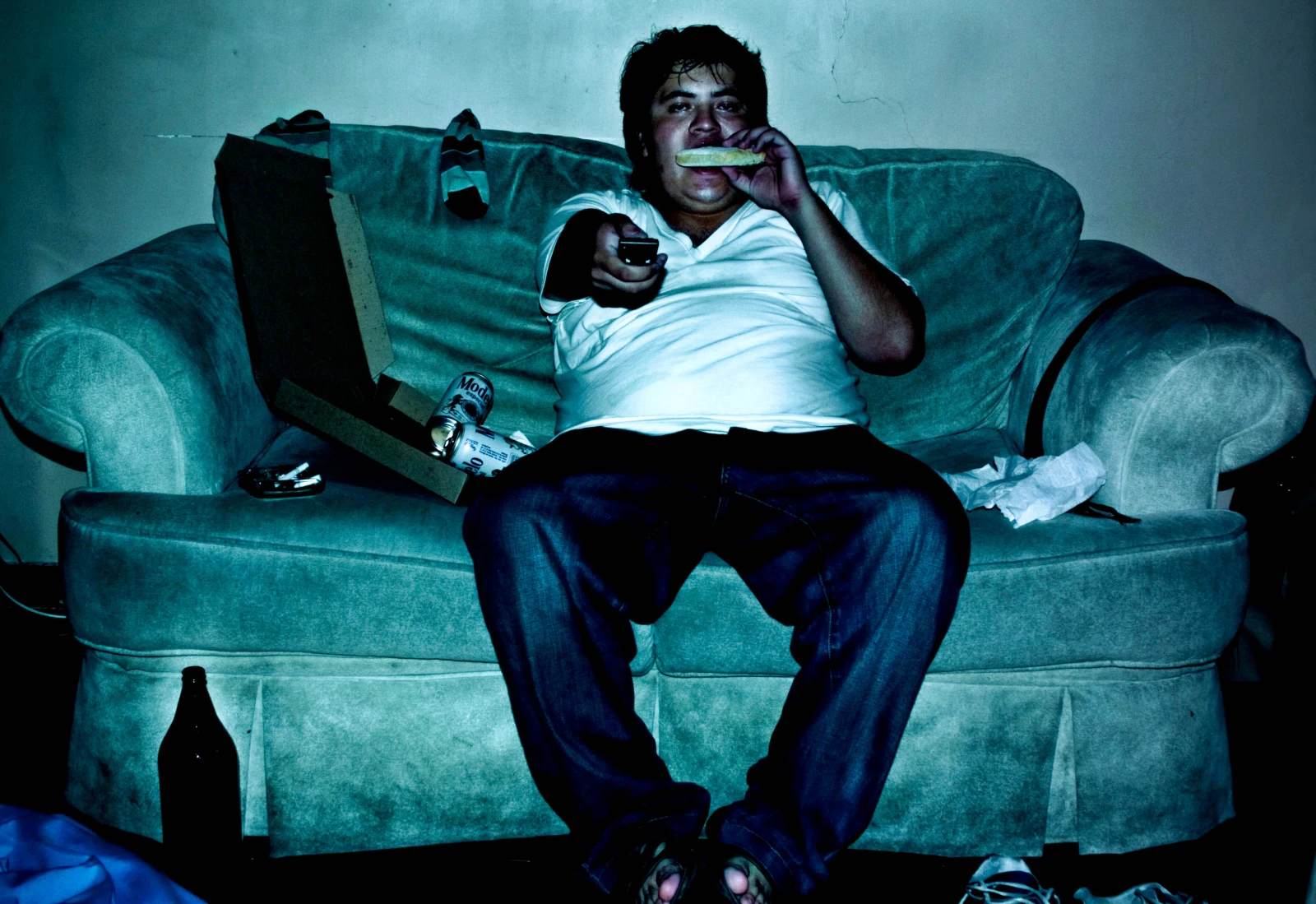Je reviens chez moi, y’est juste 9h30. J’vais me mettre un petit film avant de me coucher. Le Transporteur 2 avec Jason Statham. Je le check en mangeant un chip sel et vinaigre. Je check mon film en grignottant, pis j’suis ben. Je ne pense à rien. Je suis juste ben. J’ai pas besoin de remettre quoi que ce soit en question. Jamais.