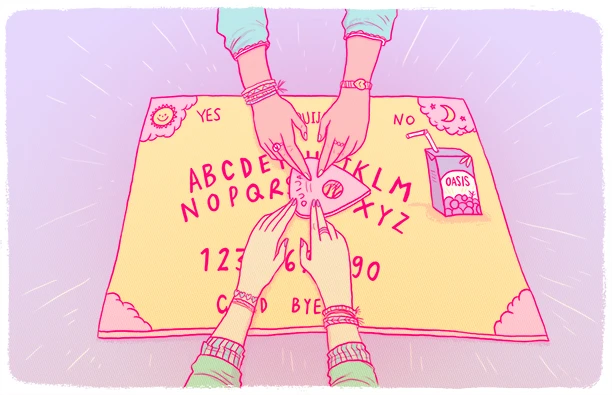 Je n’ai pas eu le choix, j’ai arrêté de parler de Ouija. De toute façon, ça faisait déjà deux semaines qu’on était là-dessus et le prochain trip s’annonçait être les Spice Girls. J’allais enfin développer ma connaissance de pop culture et cesser d’amener le mal dans l’école. La bonne nouvelle, c’est que des années plus tard, je suis encore ben relax par rapport aux phénomènes paranormaux. Pleine lune, vendredi 13, Mercure en rétrograde, décès de Jojo Savard, ça me fait pas peur. Vendredi dernier, je n’ai pas sorti ma planche Ouija, parce que je n’en ai jamais eu une (t’es-tu malade, tu peux jamais t’en débarrasser parce qu’elle revient toujours dans le fond de ton garde-robe). Mais sait-on jamais, peut-être qu’en 2049 je serai prête, planchette triangulaire à la main, toute ouïe pour caller les esprits.