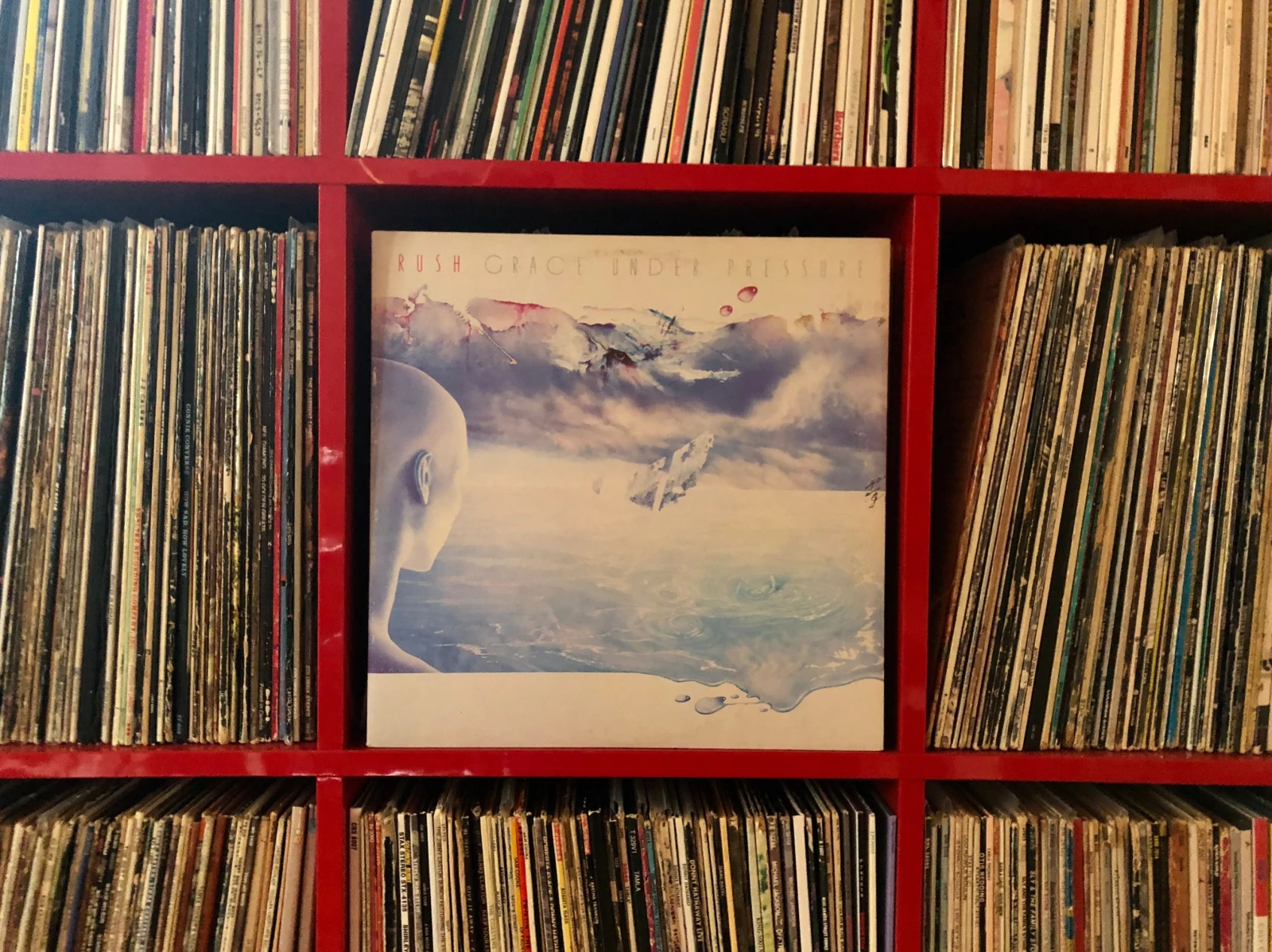 La discographie, je l’avais qui s’étendait sur les supports cassettes (originales ou copiées), CD et vinyle ; j’ai tout revendu ça pour me garnir en Stones et Led Zeppelin. Puis, il y a deux ou trois ans, j’ai racheté Grace Under Pressure avec le sentiment qu’il aurait peut-être traversé le temps. De tous les albums, Grace est celui que j’ai le moins écouté, parce qu’il reflétait le passage délicat, voire maladroit, de mon groupe préféré à travers une décennie qui ne lui appartenait pas. Ça tient pour Rush, mais aussi pour pas mal n’importe quel artiste des 70’s. À part Tom Waits, évidemment. Mais reste que j’y suis retourné et merde, je me disais, c’est pas du tout mauvais. Je veux dire, ça reste Rush, le corps se retrouve impliqué d’une étrange façon, qu’il le veuille ou non, mais somme toute, j’écoute Distant Early Warning et le futur évoqué ici me touche d’une façon que le jeune adolescent n’aurait jamais saisie.