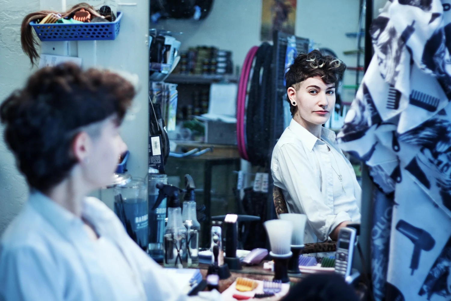 Jeune androgyne, JJ Levine offre des «coupes lesbiennes pour n’importe qui», pour la modique somme de 15$. Sculptrice capillaire éclatée, elle réalise des coupes bol, des coupes Longueuil et des coupes hipster/butch dans son atelier sur Amherst. Aperçu multisexuel du poil de tête.