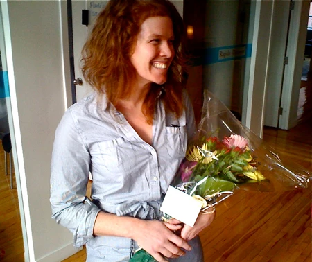 – 1 bouquet de fleurs reçu à 13h dans nos bureaux du fleuriste Beau Geste. Le bouquet contient 3 orchidées, 4 lys jaunes, 1 gerbora et ben de la fougère. Le destinateur (ça se dis-tu?) est anonyme, mais on a appelé chez le fleuriste pour faire notre enquête et on a une petite idée…
