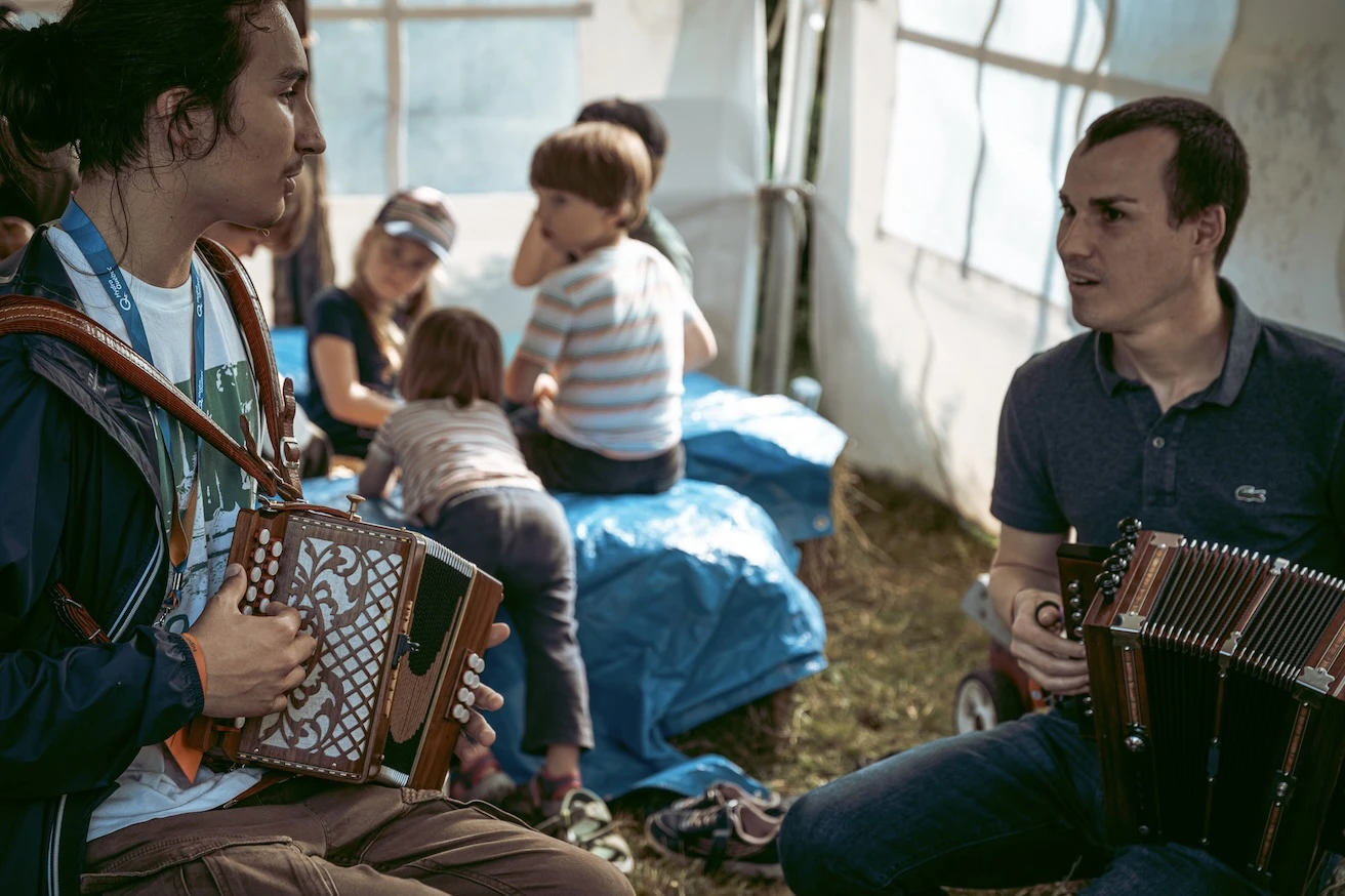 J’avoue : c’est mon premier festival trad’, et j’ai l’impression d’avoir traversé un portail. Des fedoras en paille, des ceintures fléchées, des pieds nus qui battent la mesure, des Bretons et des instruments dont j’ignore le nom. Une vielle, peut-être? Pas de posers. Pas d’attitude. Juste des gens heureux de taper des mains et de chanter ensemble, loin des regards des grandes villes.