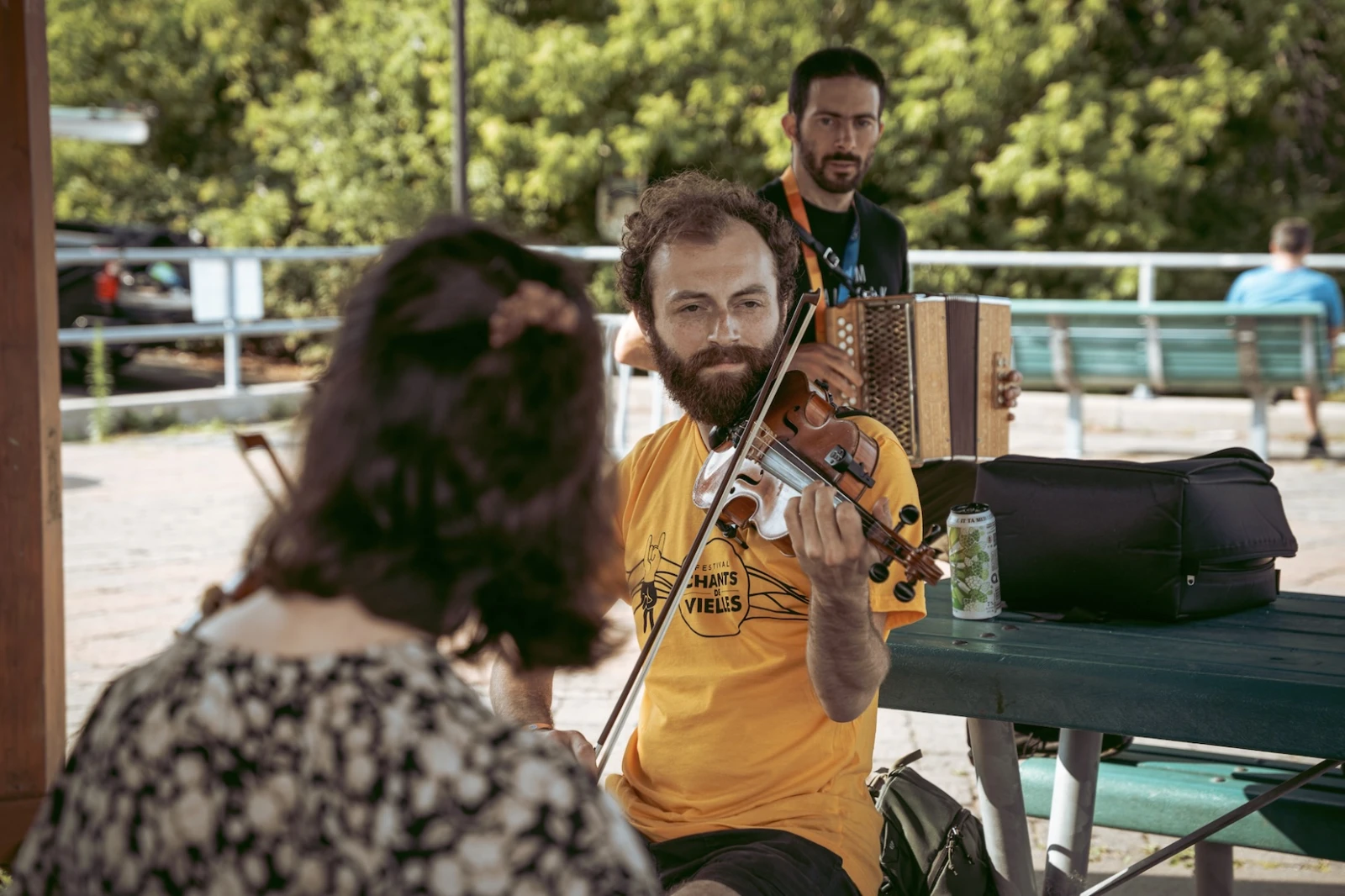 Violoniste, chanteur, porte-drapeau d’un héritage vivant, Jourdan est aussi l’une des têtes d’affiche du Festival Chants de Vielles, à Saint-Antoine-sur-Richelieu. Un village coquet de la Montérégie qui, le temps de quelques jours, troque sa quiétude bucolique contre un joyeux chaos de violoneux, de campeurs, de cornemuses et de bocks de bière descendus par des barbus en sandales.