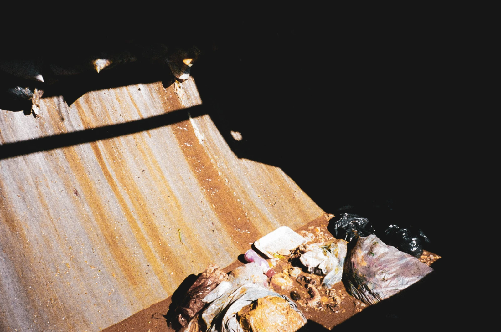 Ce quart, comme tous ceux qui suivront, se mue rapidement en une épreuve interminable sous un soleil brûlant. Un effort physique si violent qu’il en devient pathétique. Toute charge poétique s’estompe rapidement. Chaque camion, une fois rempli, prend la forme d’un triomphe sur l’épuisement. J’appréhendais bien que les premiers temps allaient être durs, mais je réalise à quel degré la charge de travail est infernale. Nous finissons notre run de peine et de misère vers 16:00, avant d’aller aider une autre équipe pour achever vers 18:30. Qu’une seule pause sur le chemin de la dompe. Le temps d’engloutir une sandwich, caler un gatorade et fumer deux smokes bien coincés à trois sur une 40 massacrée.