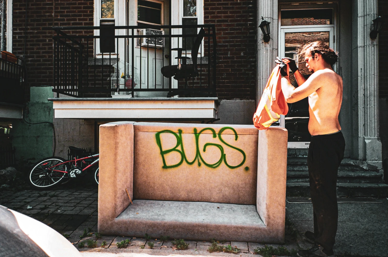 Une amie me demande comment je fais pour endurer les nuages de mouche. La vermine ne dérange pas vraiment. Les asticots par milliers, les perce-oreilles ou les rats sortant de la gueule du broyeur nous amusent plus que nous répugnent. En ces temps de déménagement, c’est surtout les punaises de lit qui nous travaillent l’esprit. Une hantise qui s’installe à chaque divan. Au retour du boulot, je m’empresse de mettre mes vêtements dans un sac pour ne pas ramener cet enfer à mes colocs.