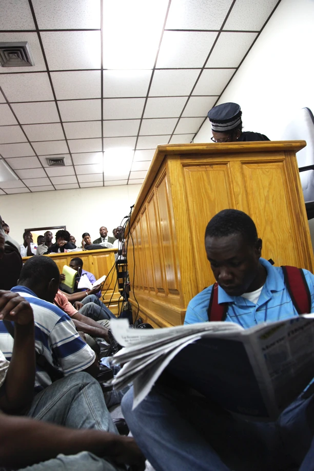 Assis dans une salle bondée où les procédures sont souvent longues, on écoute les interventions calmement. Une foule de gens sont là pour la célèbre audience. Ce possible procès contre l’ex-dictateur Jean-Claude Duvalier pourrait être historique. Si l’heure est grave, j’ai parfois envie de rire.