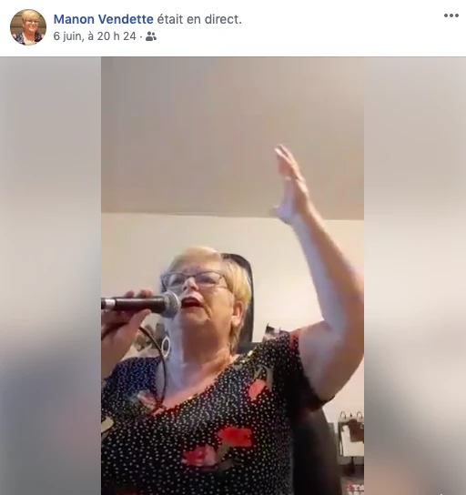 Pour rester en voix, elle organise plusieurs fois par semaine des sessions de Facebook live, durant lesquelles elle prend les demandes spéciales et lance des thématiques musicales. « J’ai fait une soirée country francophone, une soirée rétro et même une soirée Ginette tellement j’avais de demandes spéciales de Ginette Reno. Je m’amuse au bout! », raconte Manon, qui réussi parfois à fédérer 500 personnes autour de ses performances.