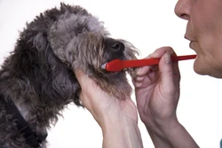 – Samedi soir, avant de me coucher : Me brosser les dents et constater avec horreur, en mettant la main sur le petit tube dans la pharmacie, que croyant utiliser de la « pâte à dents pour adulte », filleul s’est brossé les dents avec de la pâte à dents pour CHIENS :