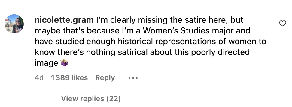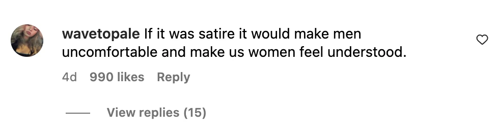 En terminant, j’aimerais mentionner ce commentaire qui résume bien l’affaire : si la satire avait été réussie, les hommes auraient été inconfortables et les femmes se seraient senties vues et entendues. Mais, en ce moment, on est loin de ça. Au contraire, l’image pousse actuellement les femmes à se déchirer entre elles pendant que les hommes rient dans leur barbe.