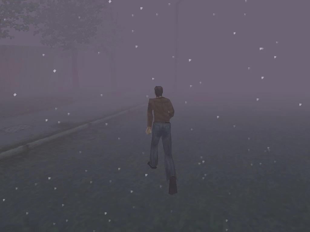 Harry se réveille seul, dans une atmosphère embrumée et enneigée, il n’est pas blessé, mais Cheryl n’est nulle part. Il croit l’apercevoir au loin, entendre le bruit de ses pas, mais tout ce qui l’entoure, c’est ça :